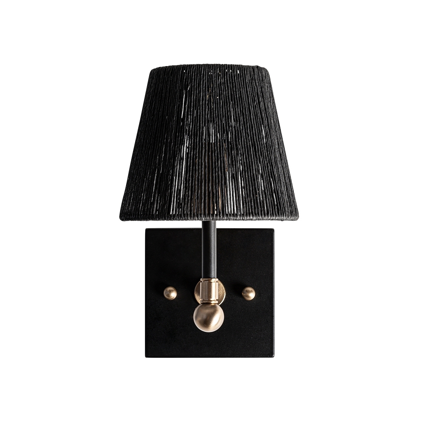 Настенный светильник Gael, стиль арт-деко. Изготовлен из железа, черного цвета, в сочетании с веревкой, золотого цвета. Съемное изделие.