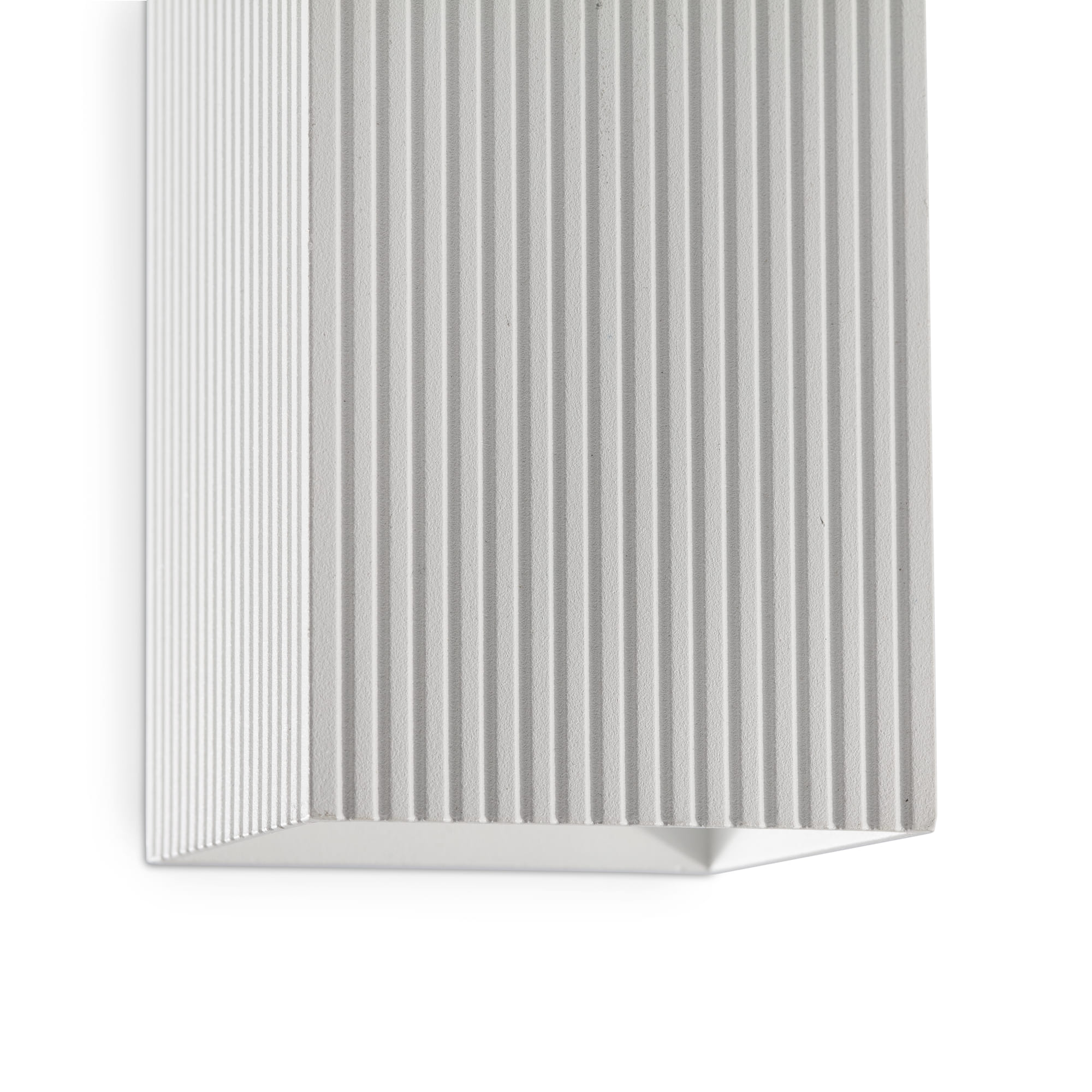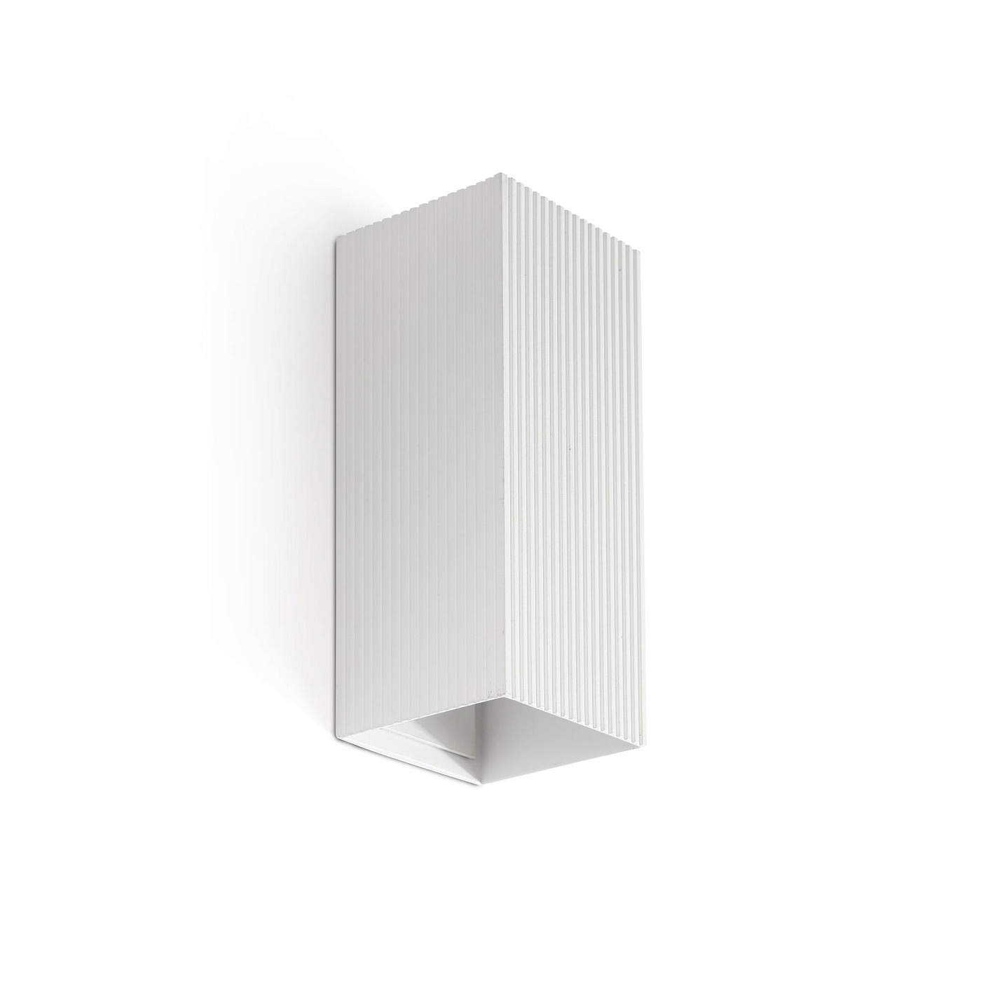 LUNE имеет квадратный текстурированный корпус, который идеально подходит для коридоров и проходов. Этот настенный светильник с белой полосатой отделкой обеспечивает эффективное и функциональное освещение, а также является интересным и современным элементом декора.