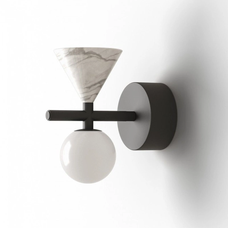 Настенный светильник Oneta черный металл / белый мрамор/белое матовой стекло