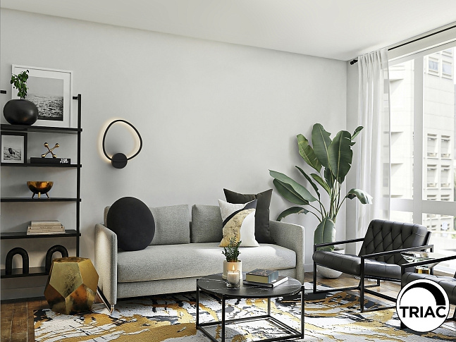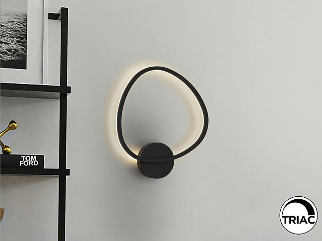 Настенный светильник из алюминия, матово-черное покрытие. Рассеиватель из опалового акрила. Светодиод 27 Вт, 1,396 лм. 3,000 К. РЕГУЛИРУЕМАЯ ЯРКОСТЬ.