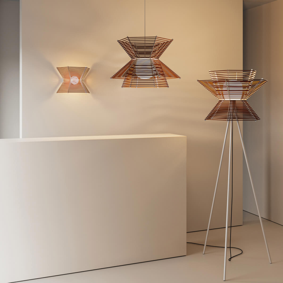 PAGODA, разработанная Начо Тимоном, демонстрирует уникальное расположение призматических плафонов с горизонтальной обмоткой шнура, перенося нас на азиатский континент. Характерное размещение поверхностей, которые формируют его различные объемы, вызывает ассоциации с крышами буддийских и индуистских храмов, предлагая тонкий намек на Дальний Восток. Эти плафоны нежно принимают свет, питая и защищая его, создавая теплую и гостеприимную атмосферу. Они отбрасывают интригующие световые проекции на смежные поверхности, улучшая любое пространство или дизайн-проект своим пленительным очарованием.
