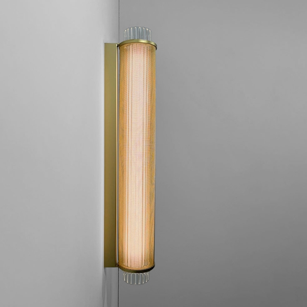 Коллекция Slim Skin состоит из вертикального подвеса, горизонтального подвеса и настенного варианта. Все они имеют диаметр 12 см и доступны в двух различных длинах: 70 см и 140 см. Slim Skin состоит из стеклянного цилиндра (доступного в опаловом белом или ребристом прозрачном стекле), покрытого металлической сеткой с латунной или черной отделкой. Металлическая сетка создает эффект муара, который исключает любые блики и обеспечивает большой визуальный комфорт.