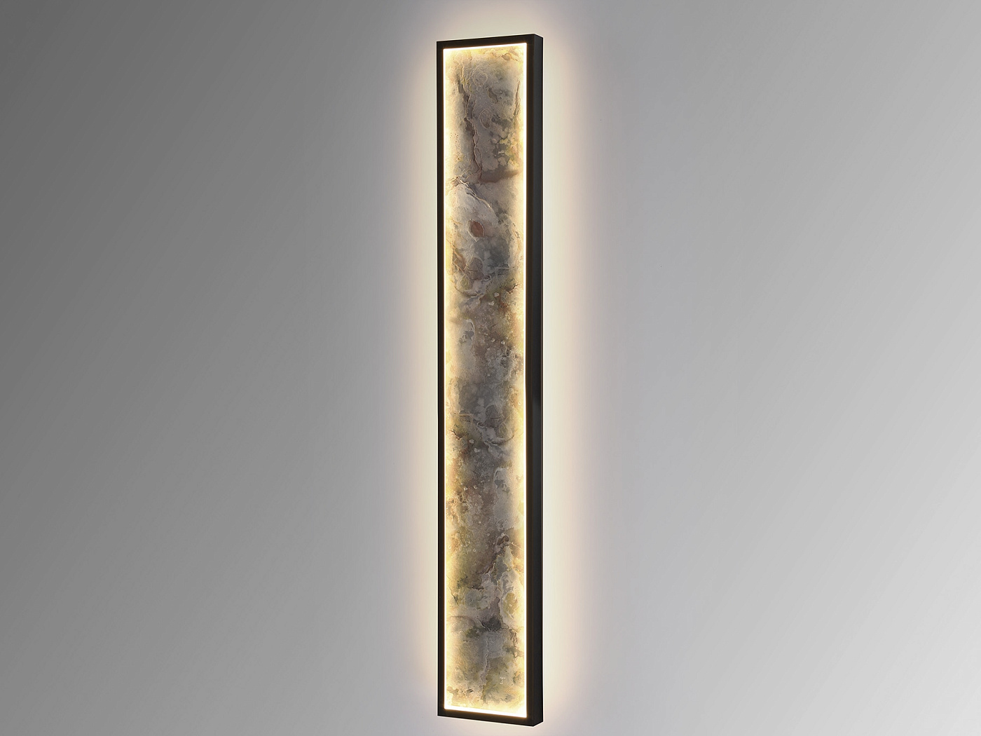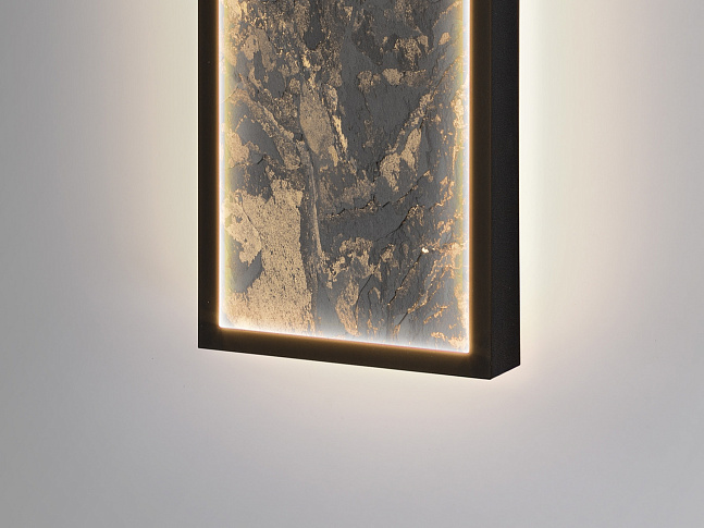 Прямоугольный настенный светильник или потолочный светильник. Изготовлен из металла с черной отделкой и многоцветным сланцем, с опаловой акриловой рамой. Светодиодный светильник 80 Вт, 1288 лм, смена цвета CCT, 3000/4000/6000 К Выбор цветовой температуры CCT осуществляется с настенного переключателя последовательными нажатиями клавиш. Включена функция памяти.