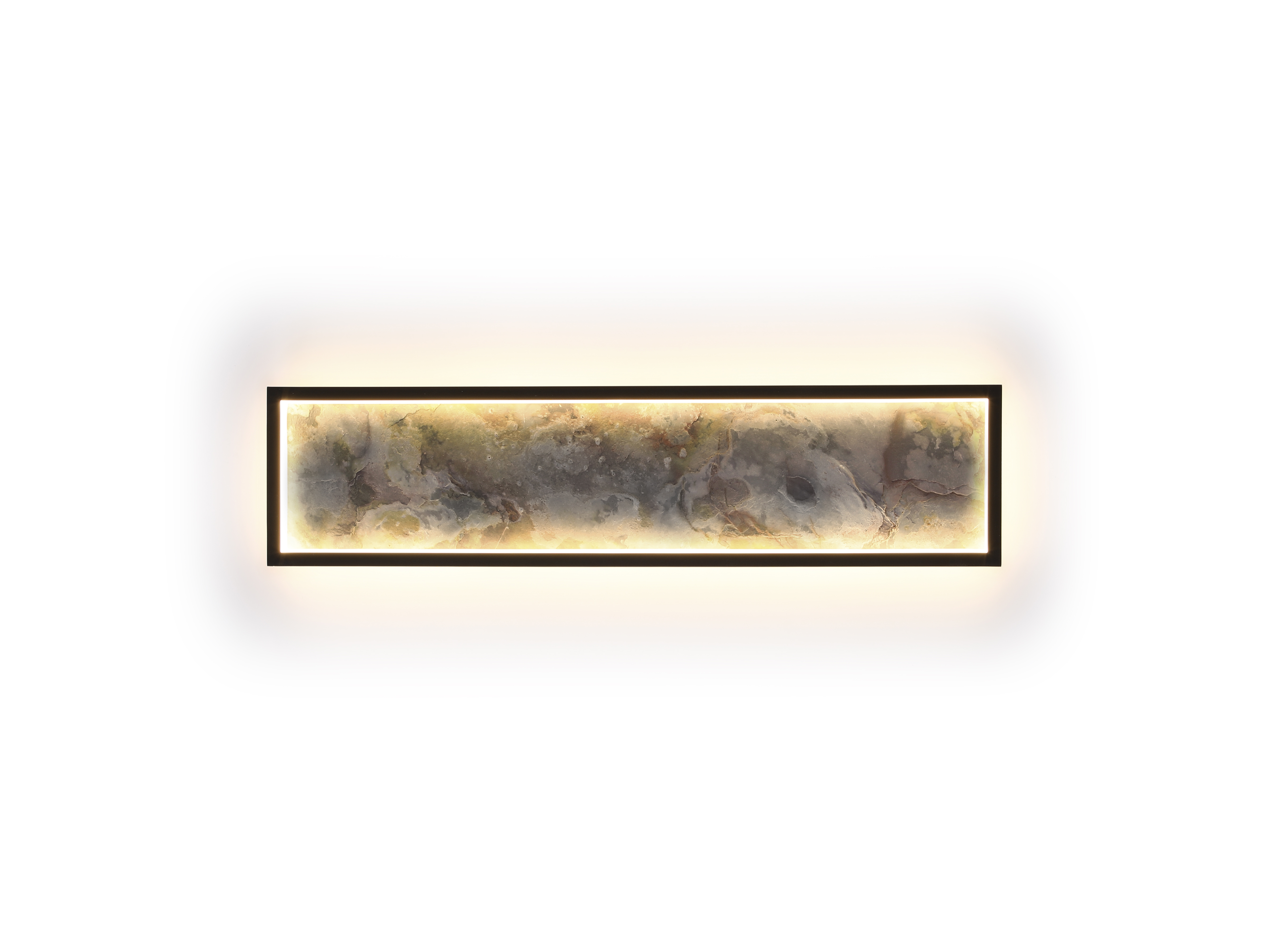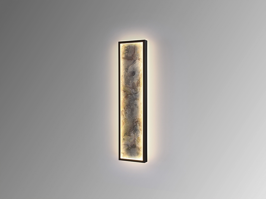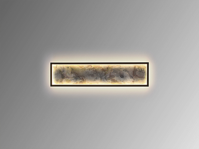 Прямоугольный настенный светильник или потолочный светильник. Изготовлен из металла с черной отделкой и многоцветным сланцем, с опаловой акриловой рамой. Светодиодный светильник 52 Вт, 947 лм, смена цвета CCT, 3000/4000/6000 К. Выбор цветовой температуры CCT осуществляется с настенного переключателя последовательными нажатиями клавиш. Включена функция памяти.