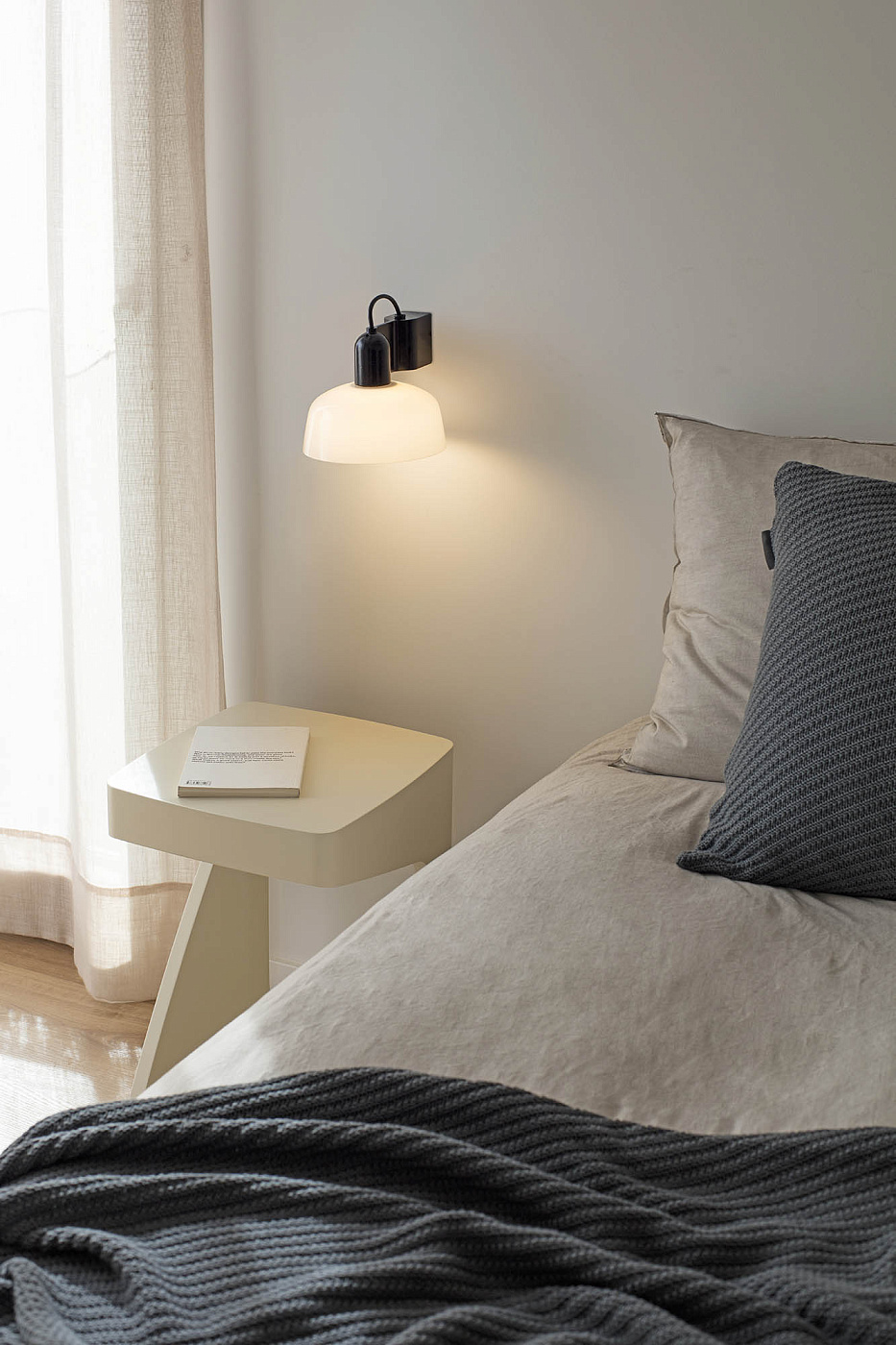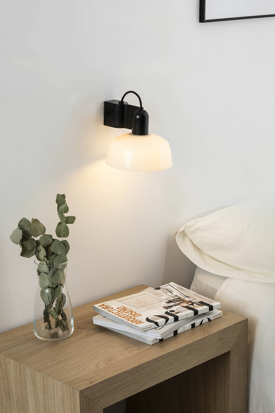TATAWIN — это семейство светильников, разработанное Адольфо Абейоном. Форма тени напоминает верхнюю часть характерных домов Татауина, города на юго-востоке Туниса. Этот компактный и элегантный настенный светильник имеет алюминиевый корпус и абажур из белого опалового стекла.
