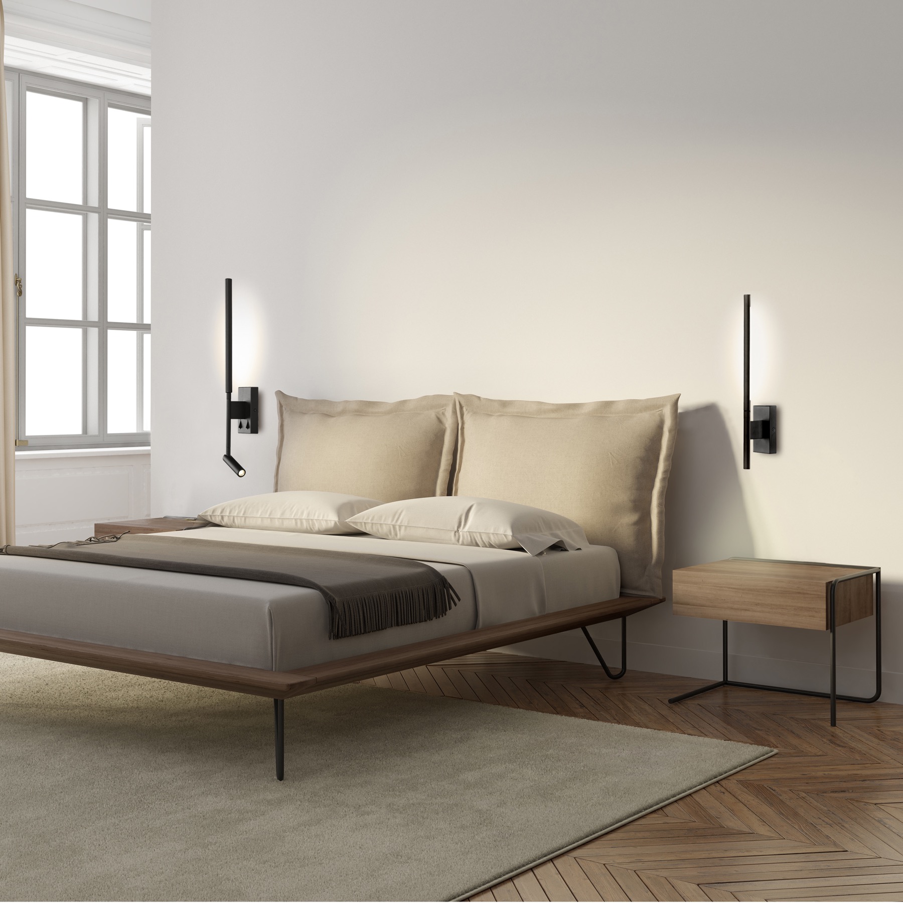 Настенный светильник Torch отлично подойдет для установки в помещении, оформленном в стиле хай-тек. Осветительный элемент встроен в конструкцию и не требует приобретения дополнительных лампочек. Светильник выполнен из металла и алюминия. Основным цветом товара является черный.