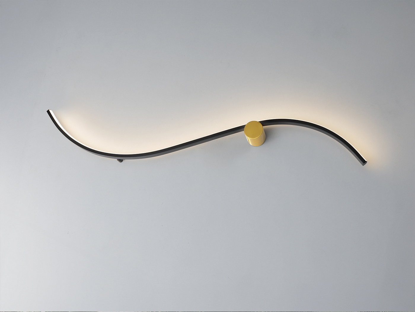 Настенный светильник из металла и алюминия, матовая черная и золотистая отделка. Опаловый силиконовый рассеиватель. Светодиод 13 Вт, 1050 лм, 3000 К.