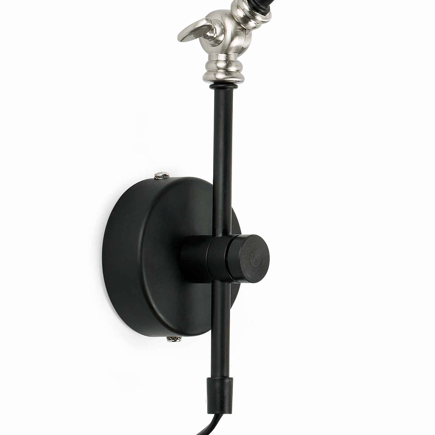 Celia окрашен в глубокий чёрный матовый цвет, и это придаёт ему совершенно неотразимый вид. Конструкция светильника шарнирная, что делает взаимодействие с ним более удобным. Лампочка E14 MAX 20W  (в комплект не входит) услужливо подаст свет туда, где он нужен. В общем, по всем пунктам купить бра Celia — отличная идея, которой стоит поддаться здесь и сейчас.