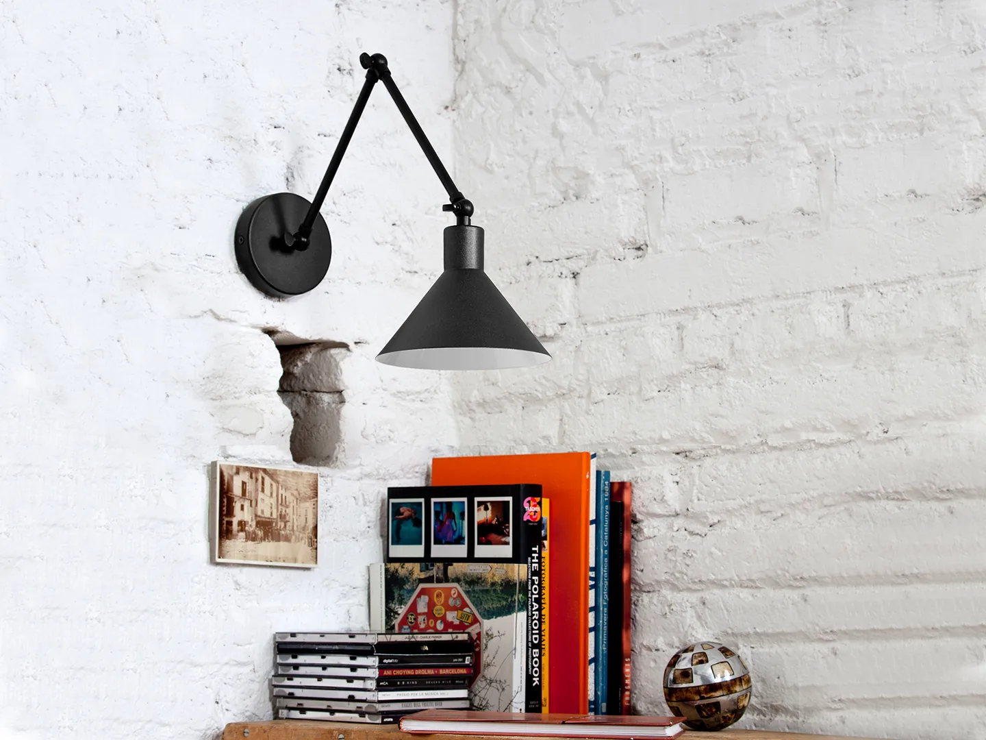 Настенный светильник Capuchina с коническим металлическим плафоном доступен в двух форматах и с разным диаметром. Поворотные шарниры позволяют не только поворачивать кронштейны по вертикали, но и наклонять абажур вправо или влево. Это очень универсальная и декоративная лампа, которая подходит как для домашнего использования, так и для коммерческих проектов.