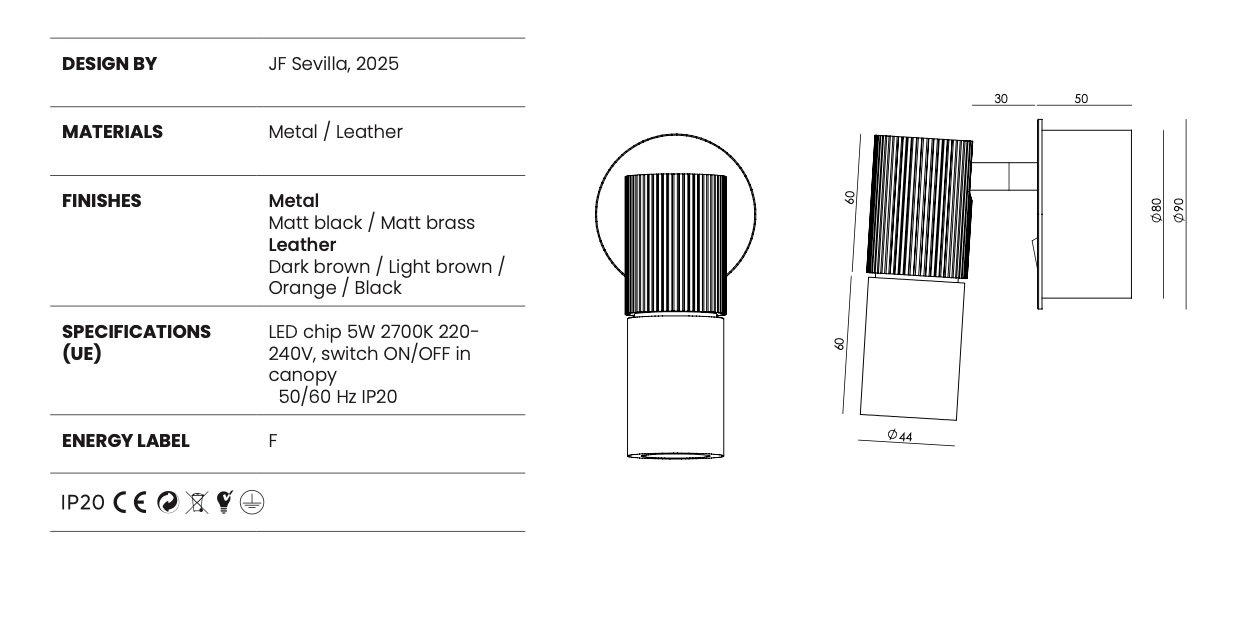 Бра Tura C бежевая кожа/золотой металл