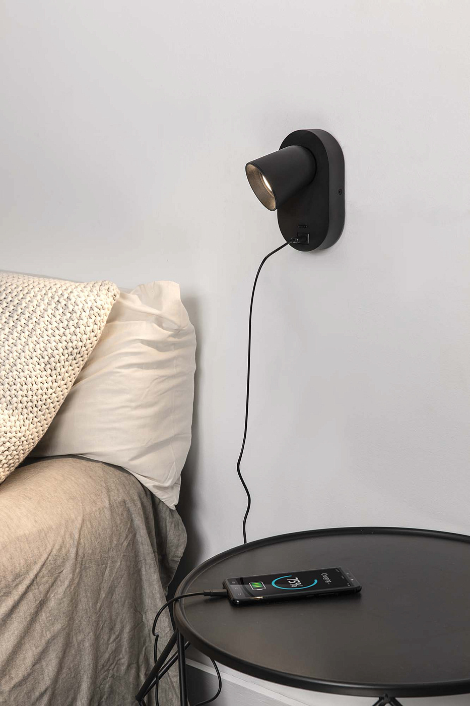 CORB — это настенный светильник, предназначенный для освещения спален и контрактных помещений, таких как гостиничные номера. Этот черный настенный светильник из стали можно ориентировать. Он имеет вход USB Type C мощностью 5 Вт.