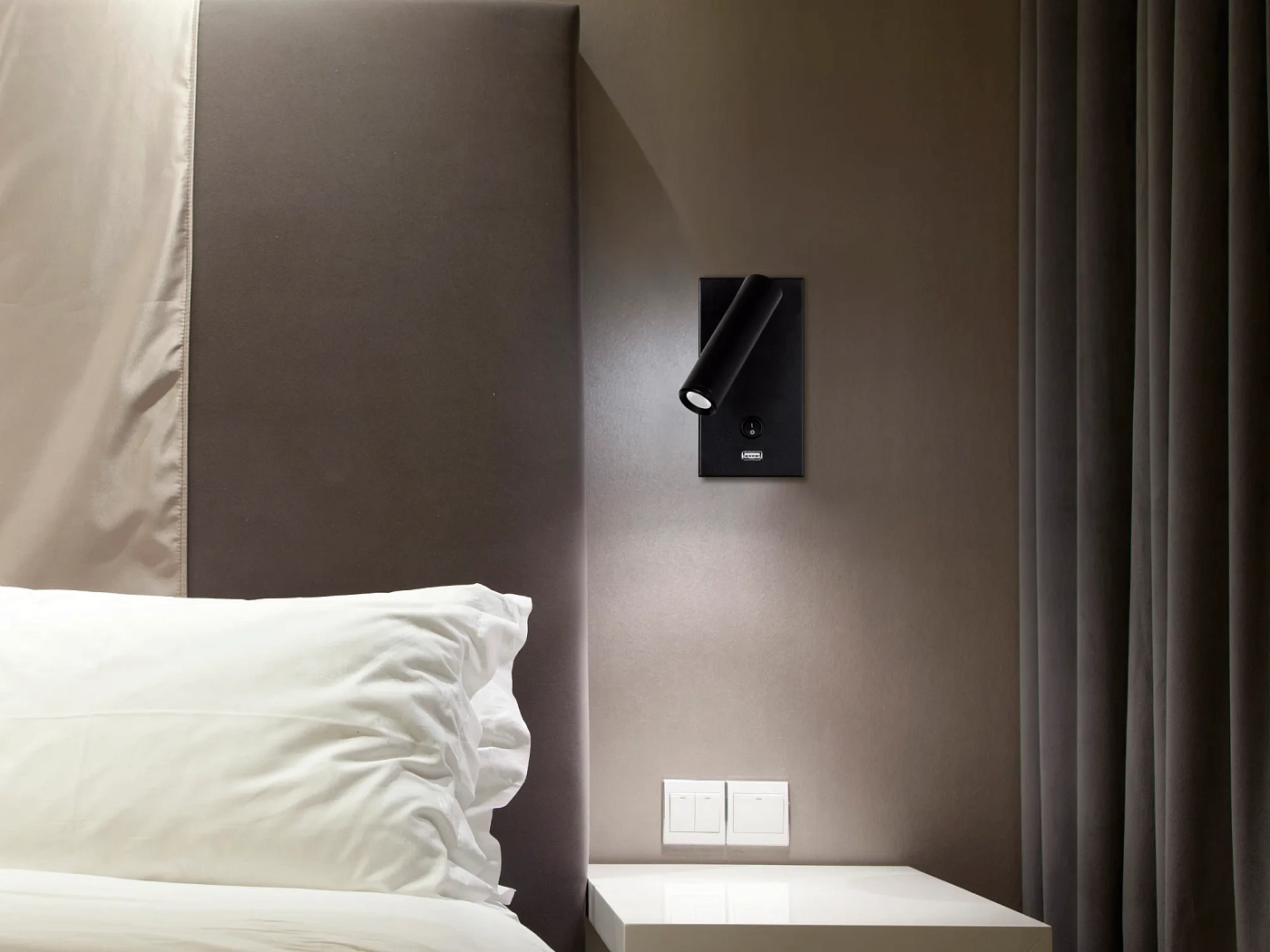 Коллекция Manhattan функциональна и универсальна. Ее мощный прожектор можно направить в любую сторону, и он идеально подходит для использования в качестве прикроватной настенной лампы в гостиничных номерах.