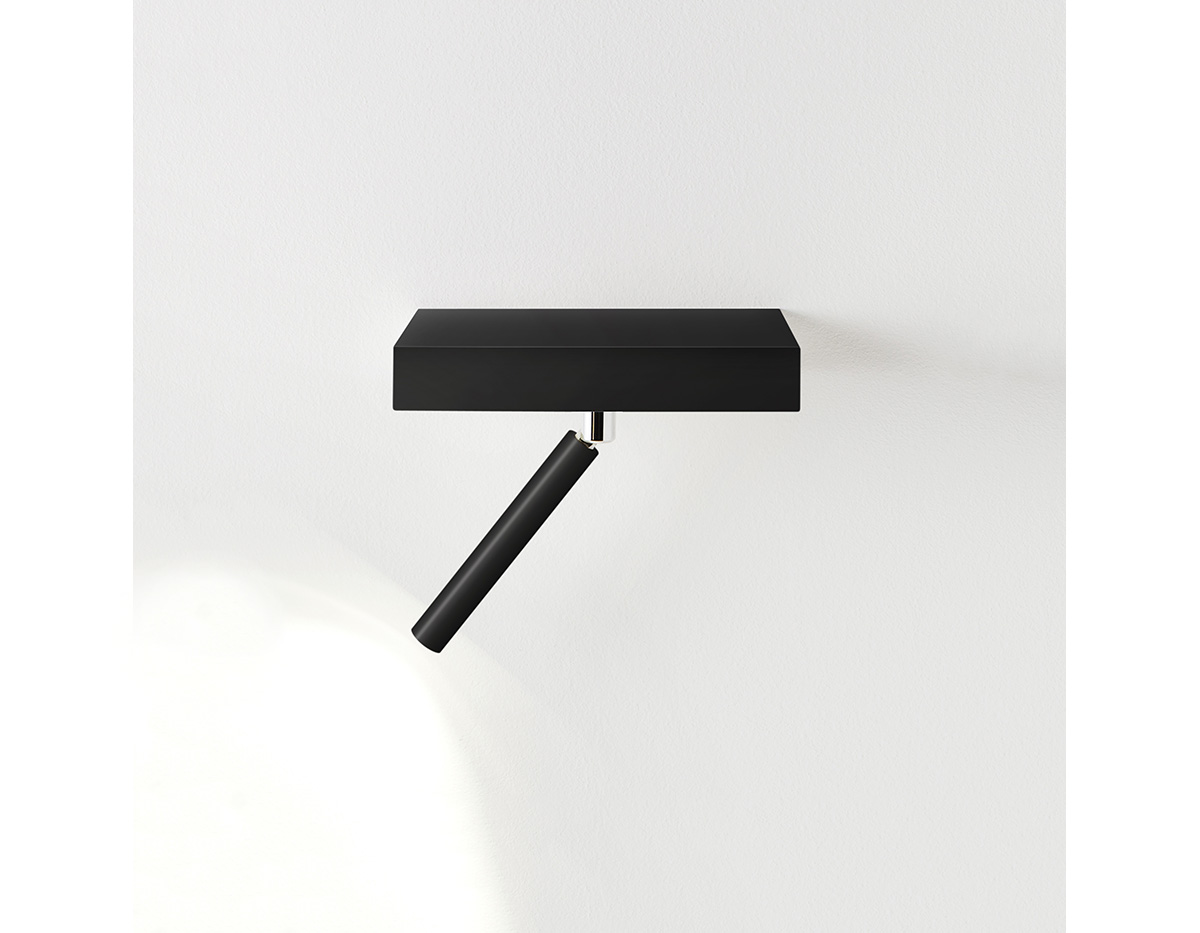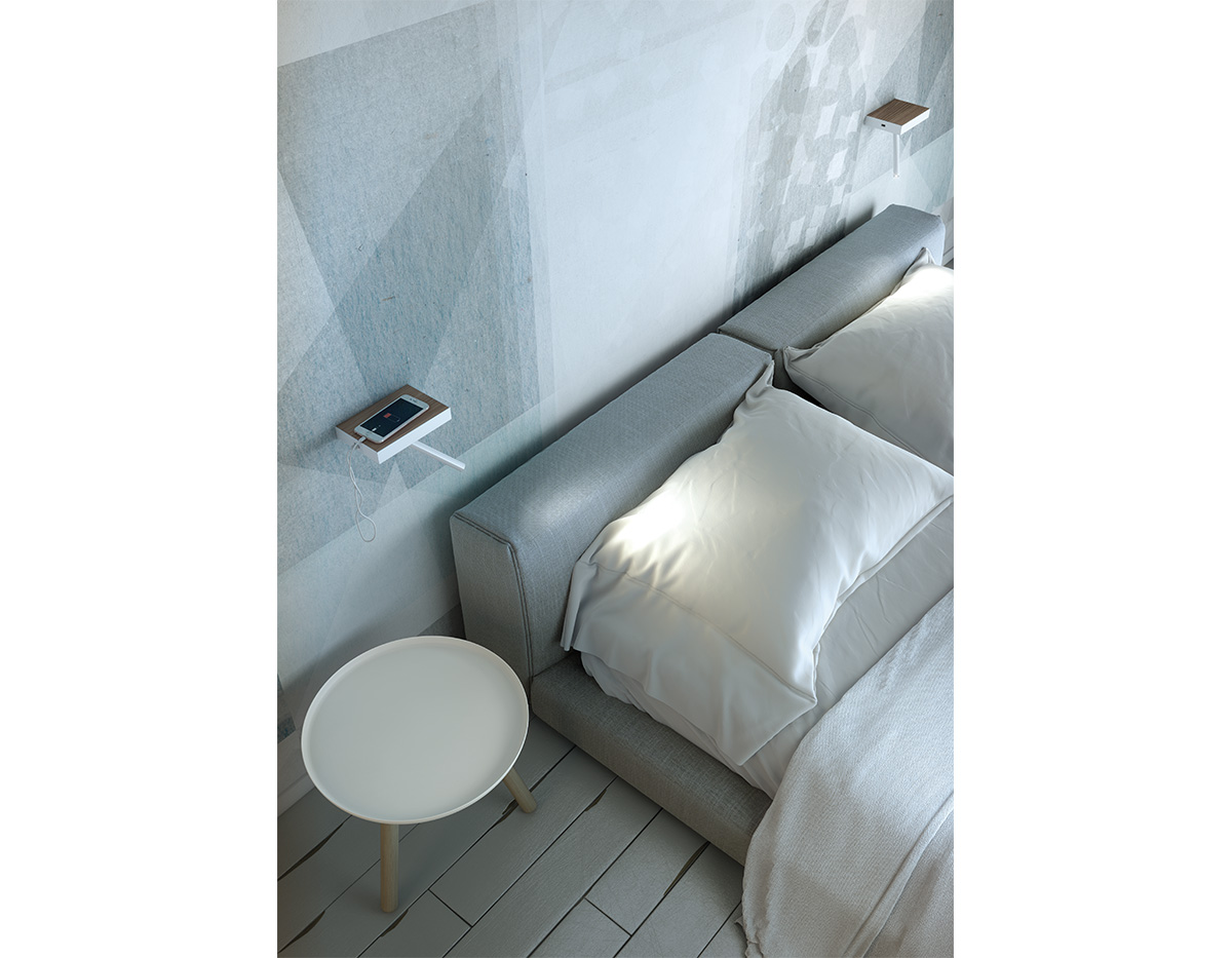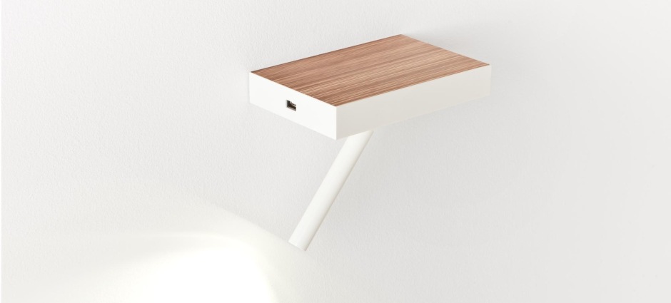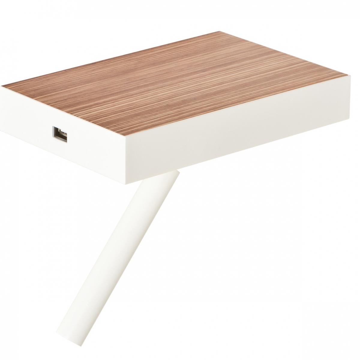 Металлическая настенная лампа для чтения с деревянной полкой и зарядным устройством USB на 2 ампера. В комплекте регулируемый рычаг для чтения со встроенным светодиодом и выключатель в нижней части полки.