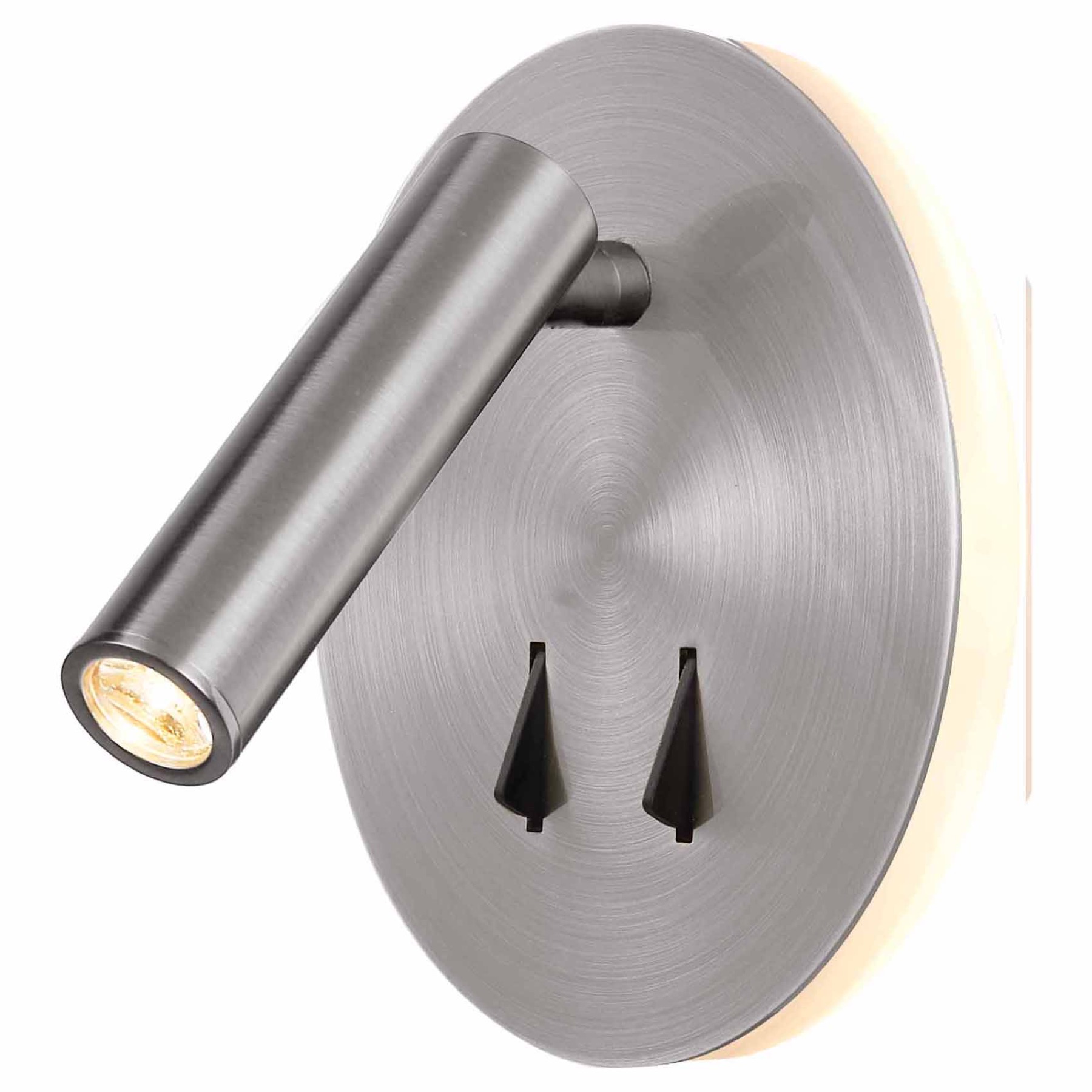 Светодиодный настенный светильник Cayman с выключателями, выполнен из алюминия серебристого цвета в современном стиле, идеально подходит для спальни.