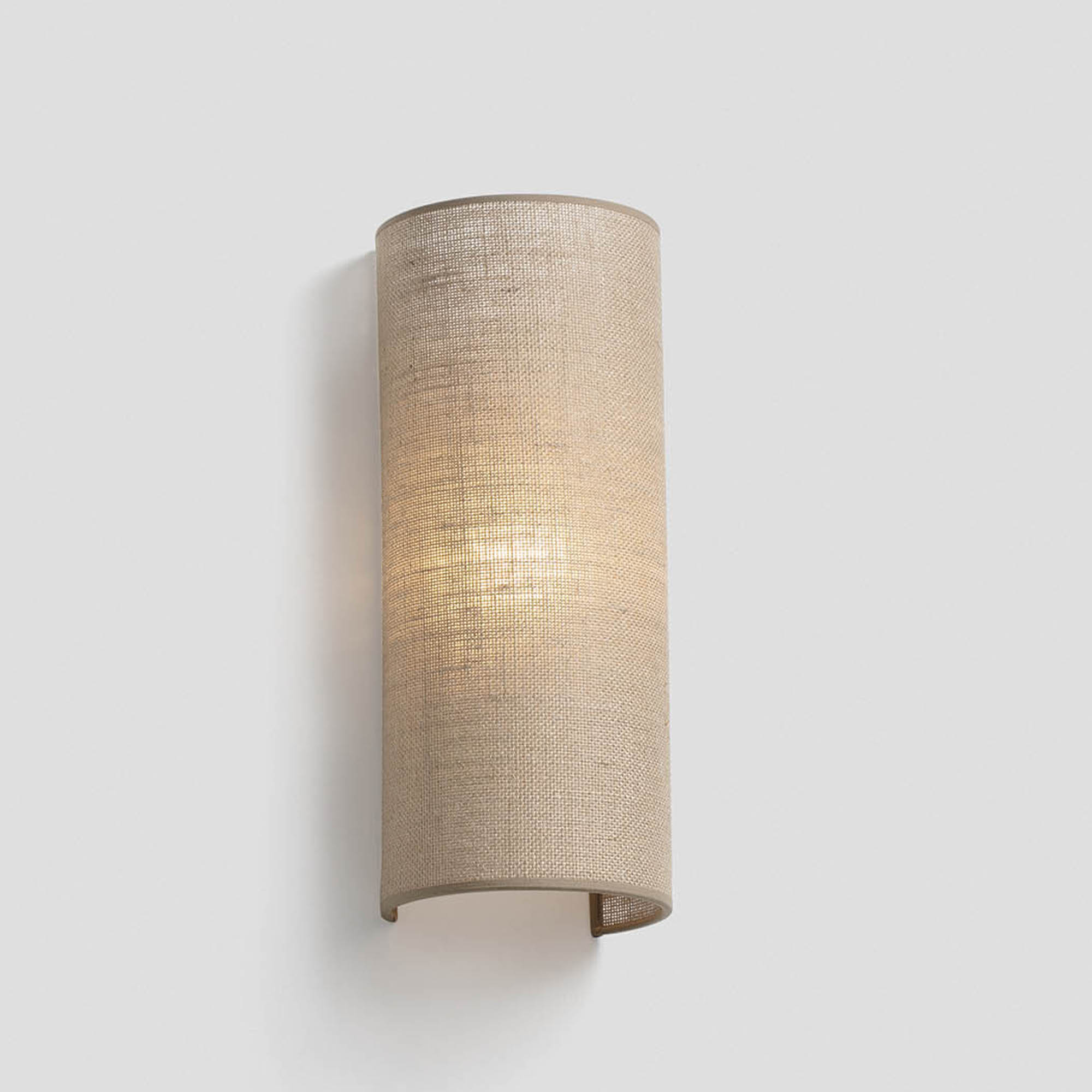OTTON — настенный светильник с джутовым абажуром. Идеально подходит для декоративного освещения как дома, так и в отелях, ресторанах и других помещениях. Тень изготовлена на месте из натуральных материалов. Круглая версия, размеры: 370x148x125 мм.