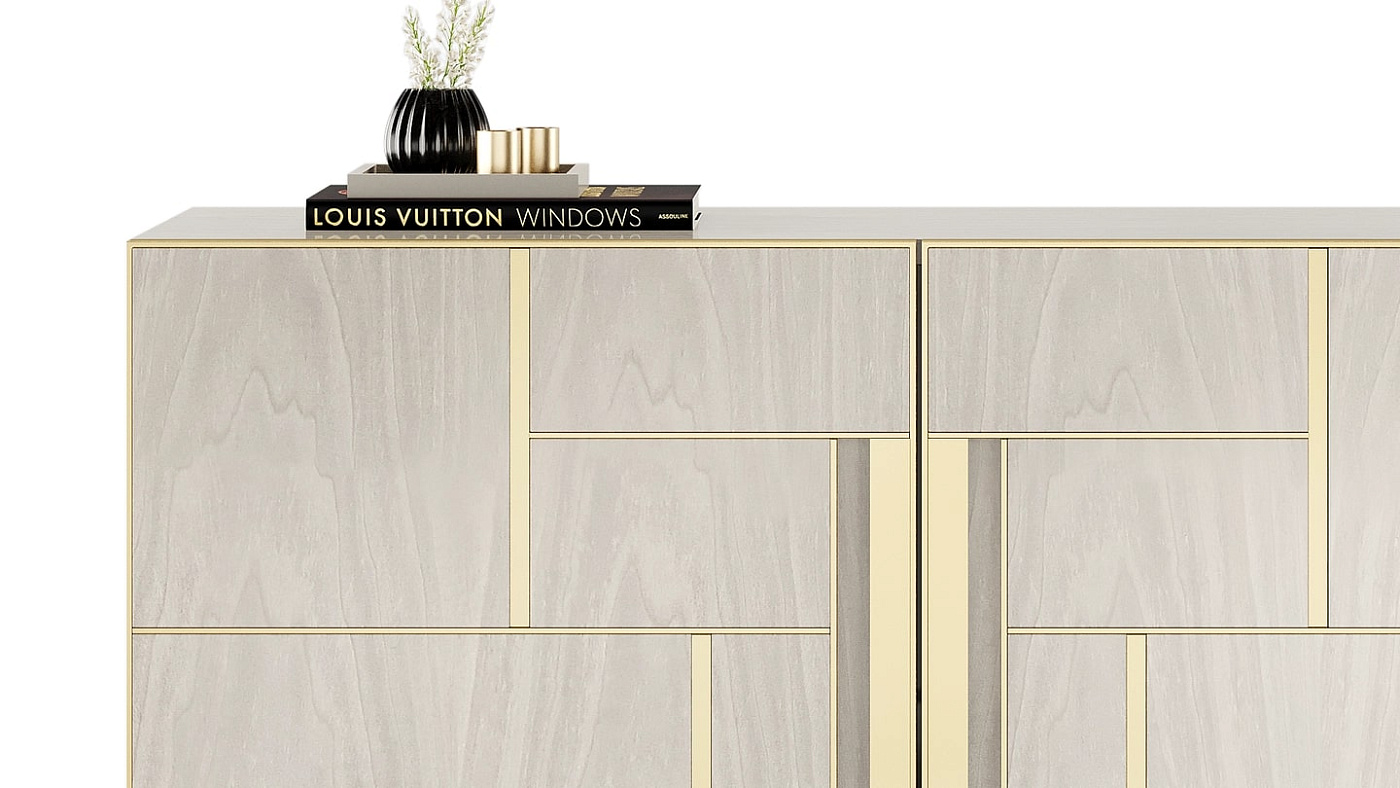 Угловой шкаф DIDOT, подходящий для самых разных помещений и применений, будет одинаково уютно смотреться как в спальне, так и в гостиной. Выполненные из лака и деревянного шпона, графичные матовые латунные двери превращают их в произведение искусства.