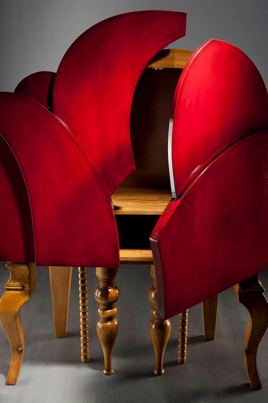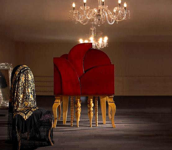 Высокий комод Flor от испанской фабрики Lola Glamour изготовлен вручную из массива португальской вишни. Вдохновением для создания этого удивительного комода стал Сиднейский оперный театр, строительство которого было завершено в 1973 году. Парусообразные купола, образующие крышу здания театра, легли в основу дизайна комода Flor от Lola Glamour.