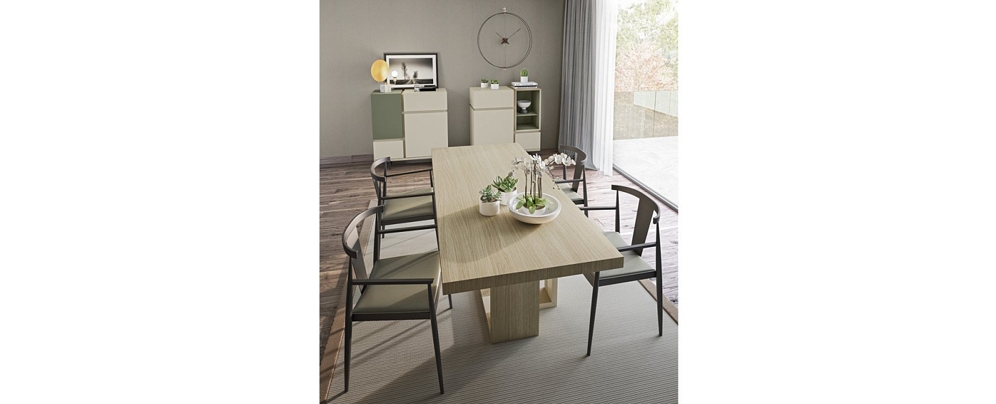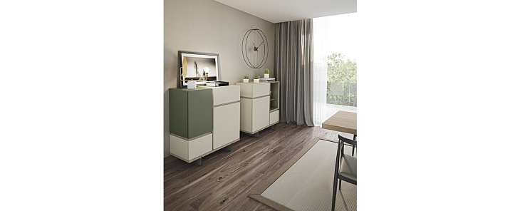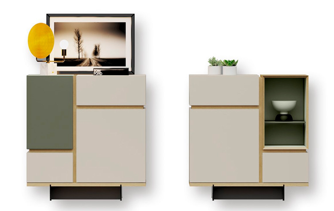Игра двух шкафов, расположенных почти симметрично. Сочетание дверей, выдвижных ящиков и дерева diáfano придает группе идеальную эстетическую симметрию. Это относится к группе гармоничных хранилищ и прекрасно выполнено. Основание с металлическими ножками возвышает композицию и придает ей завершенность