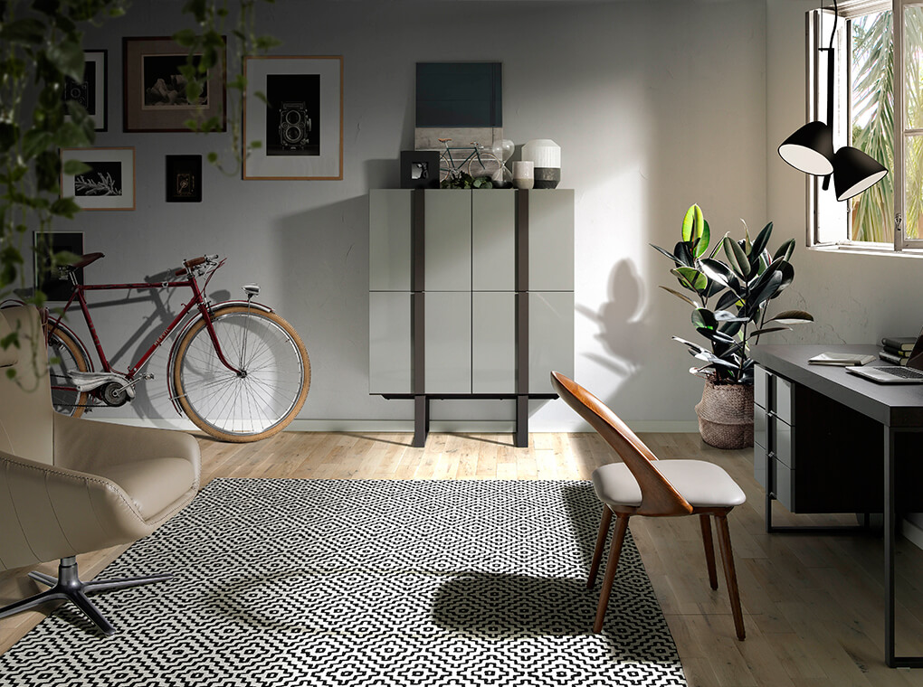 Лакированный буфет (темно-серый RAL7037) CP1706-F от фабрики Angel Cerda — нужный предмет мебели в оригинальном исполнении. Буфет моментально притягивает взгляд. Его несложная конструкция удачно переплетается с необычным дизайном. Здесь создатели решили воплотить эффектный зрительный обман, «зажав» каркас между длинных реек. Этот прием выглядит стильно и надолго цепляет взгляд. Буфет имеет практически квадратную форму. Визуально он поделен на четыре равных сектора, которые закрываются распашными дверями на петлях. Они не имеют ручек, а вместо них оснащены доводчиками. Внутри каждого отделения находится по одной горизонтальной полке, благодаря чему, внутри буфета всего получается восемь отделений. Все они одинаковой площади. Материал изготовления — прочный МДФ и натуральное дерево венге. Из этой породы сделаны декоративные рейки, проходящие вдоль всего фасада. Буфет поддерживают две рамочные опоры. Они изготовлены из толстого металла, окрашены в цвет венге. Находясь ровно под декоративными рейками и имея ту же самую ширину грани, создается ощущение, словно ножки буфета «уходят» вверх. Именно этот визуальный эффект — главная «изюминка» модели. Размеры буфета: ширина — 120 см, высота — 150 см, глубина — 43 см. Доставка осуществляется в разобранном виде (крепеж в комплекте). В коллекцию CP1706 также входят письменный стол, тумбочка, тумба под ТВ.