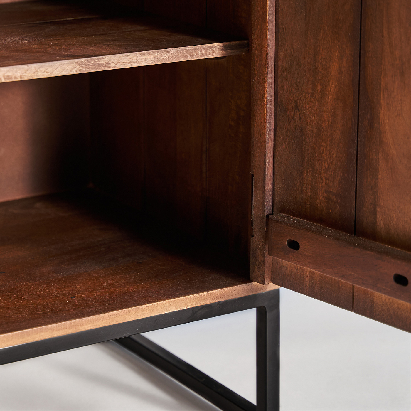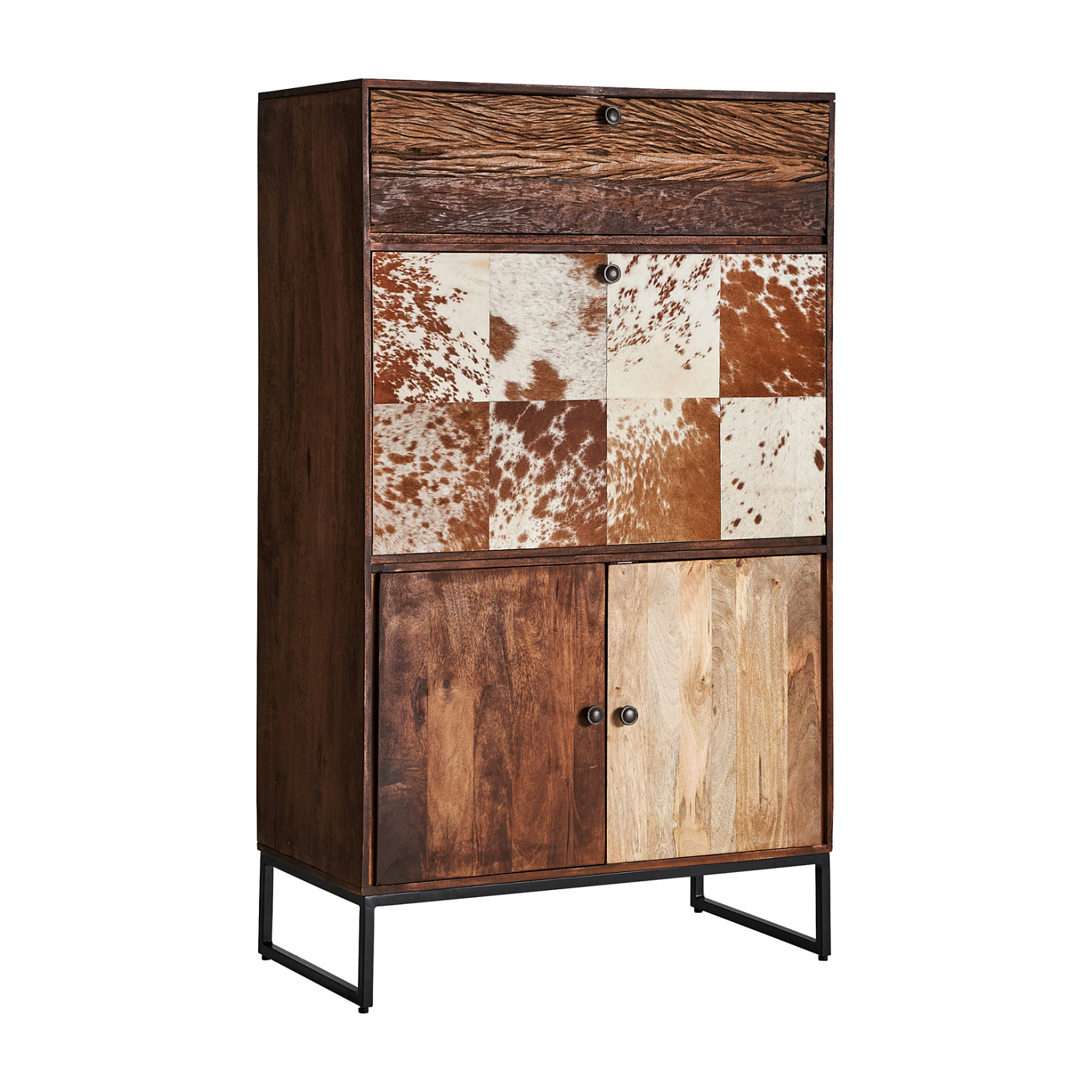 Мебель для бара Texas, коричнево-бежевая, в скандинавском стиле. Изготовлен из переработанной древесины манго в сочетании с ковкой и воловьей кожей.