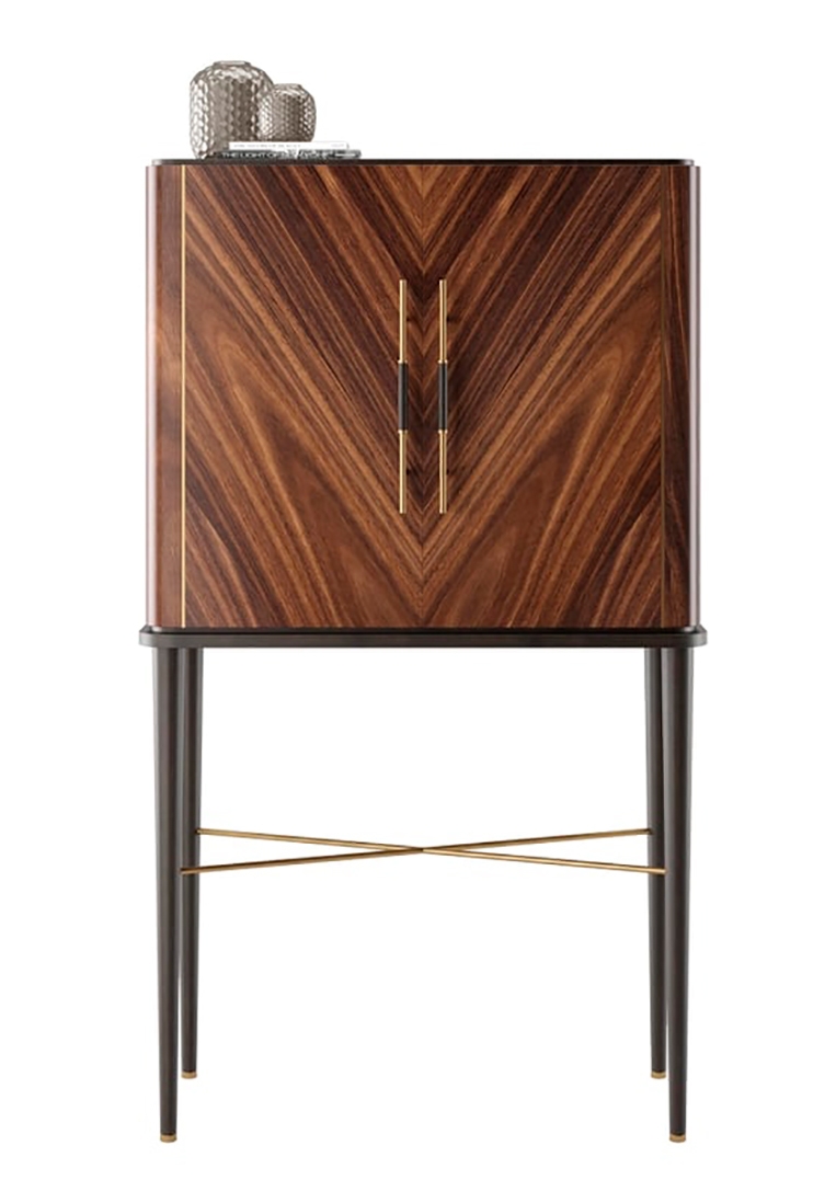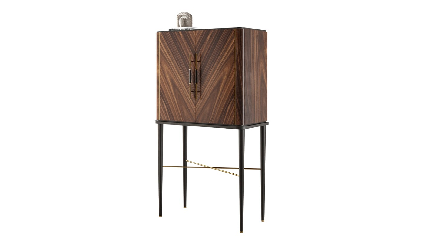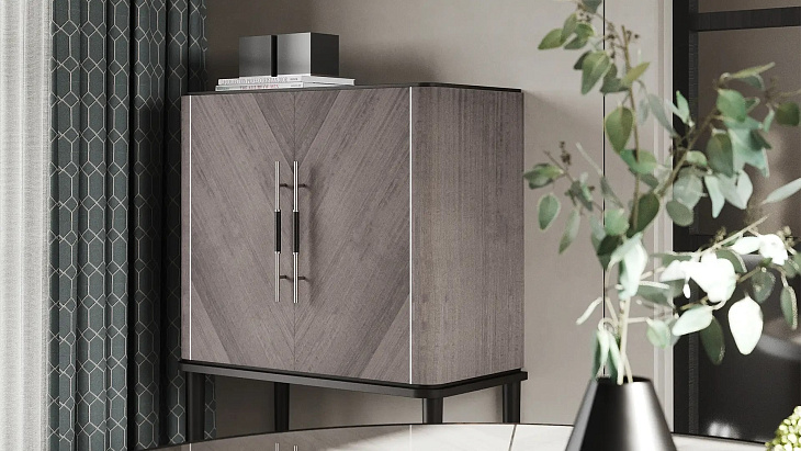 Сразу ставший классикой шкаф SANTORINI tall приобретает традиционную форму и переосмысливает ее таким образом, чтобы она казалась освежающе оригинальной. Изюминки включают декоративную скобу основания из матовой латуни, выбор шпона дерева с глубокими прожилками для фасадов дверей и внутреннее дополнение - бронзовую зеркальную спинку.