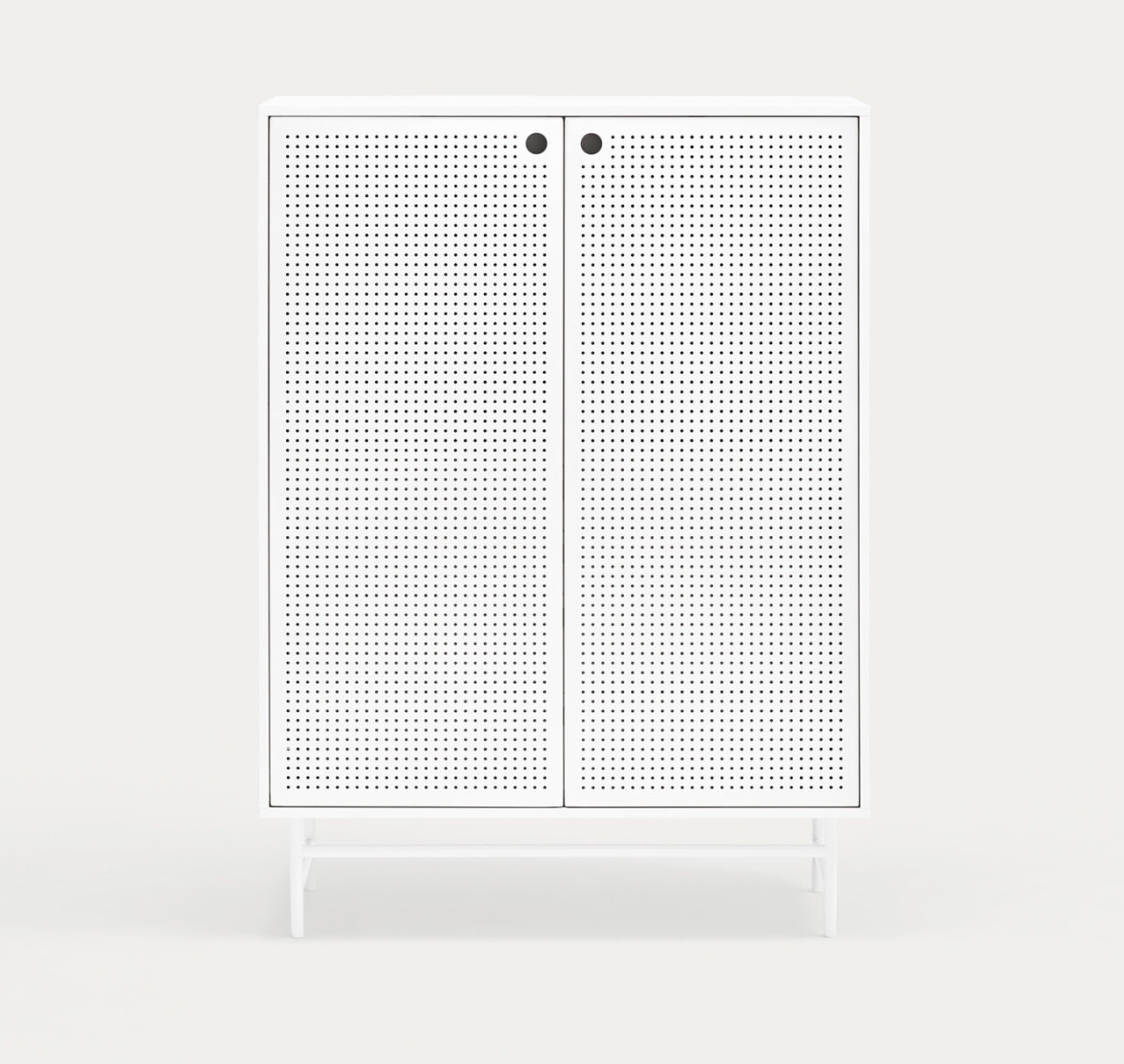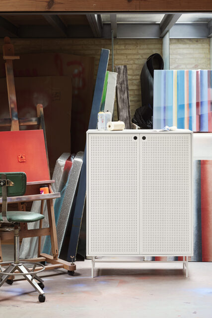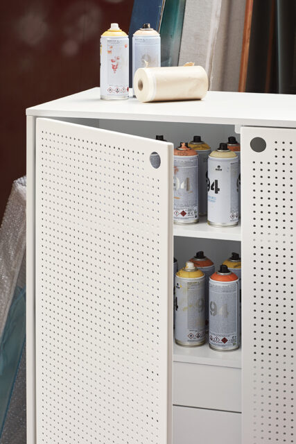Шкаф Punto, оформленная в индустриальном стиле, сочетает в себе эти эстетические концепции с дизайном и функциональностью. Коллекция отличается перфорированными металлическими дверцами со встроенными круглыми ручками. Корпус выполнен в лакированном МДФ различных цветов.