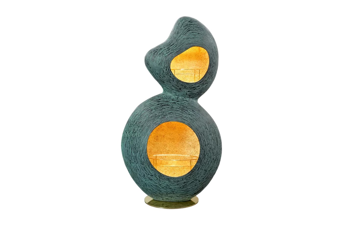Скульптурный бар Douro — это пленительный шедевр, который гармонично сочетает в себе артистизм и функциональность. Его скульптурная абстрактная форма создает визуально поразительное присутствие, делая его центром внимания любого пространства. Этот бар, спроектированный с двумя секциями, имеет внутреннее освещение, которое элегантно демонстрирует бутылки и другие ценные предметы, создавая заманчивую экспозицию. Интерьер украшен текстурированной отделкой из листового золота, добавляющей нотку роскоши и богатства. Снаружи бар имеет текстурированную поверхность, отделанную эксклюзивным цветом Verdigris от Karpa, излучающую ощущение уникальности и изысканности. Благодаря своему исключительному мастерству и вниманию к деталям скульптурный бар Douro — это не просто функциональная вещь, а настоящее произведение искусства, которое возвышает атмосферу любого интерьера.