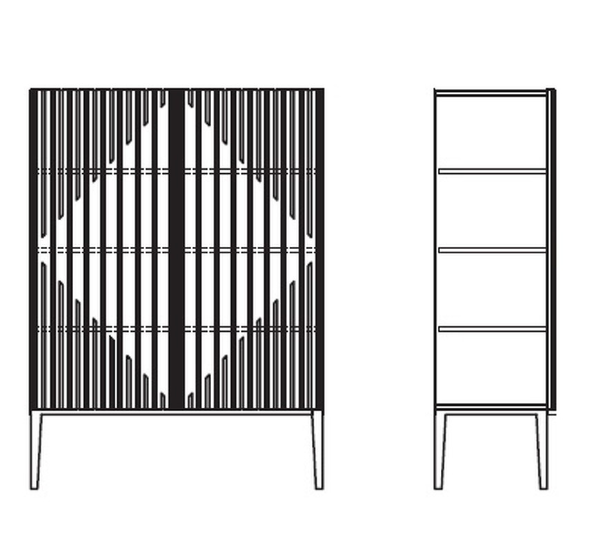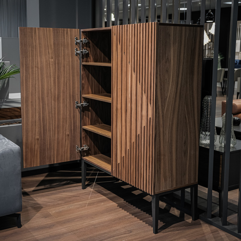 Высокий буфет MENORCA шпон ореха F, темно-серый лак, металлические ножки