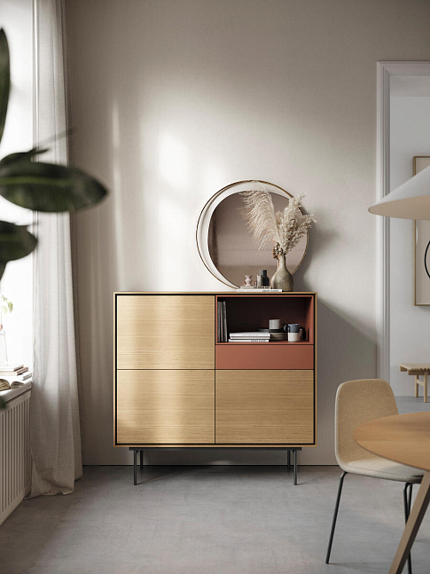 Дизайнерский буфет Aura задумывался как декоративный предмет интерьера для жилых помещений. Его дизайн навеян прошлым, но включает большую дозу современности. Подобный стиль мебели характерен для северных европейских стран, где мастерски умеют соединять традиции, природные мотивы и инновации. Задумка воплотилась в модную мебель для гостиной и кухни с тонким намеком ретроспективности.