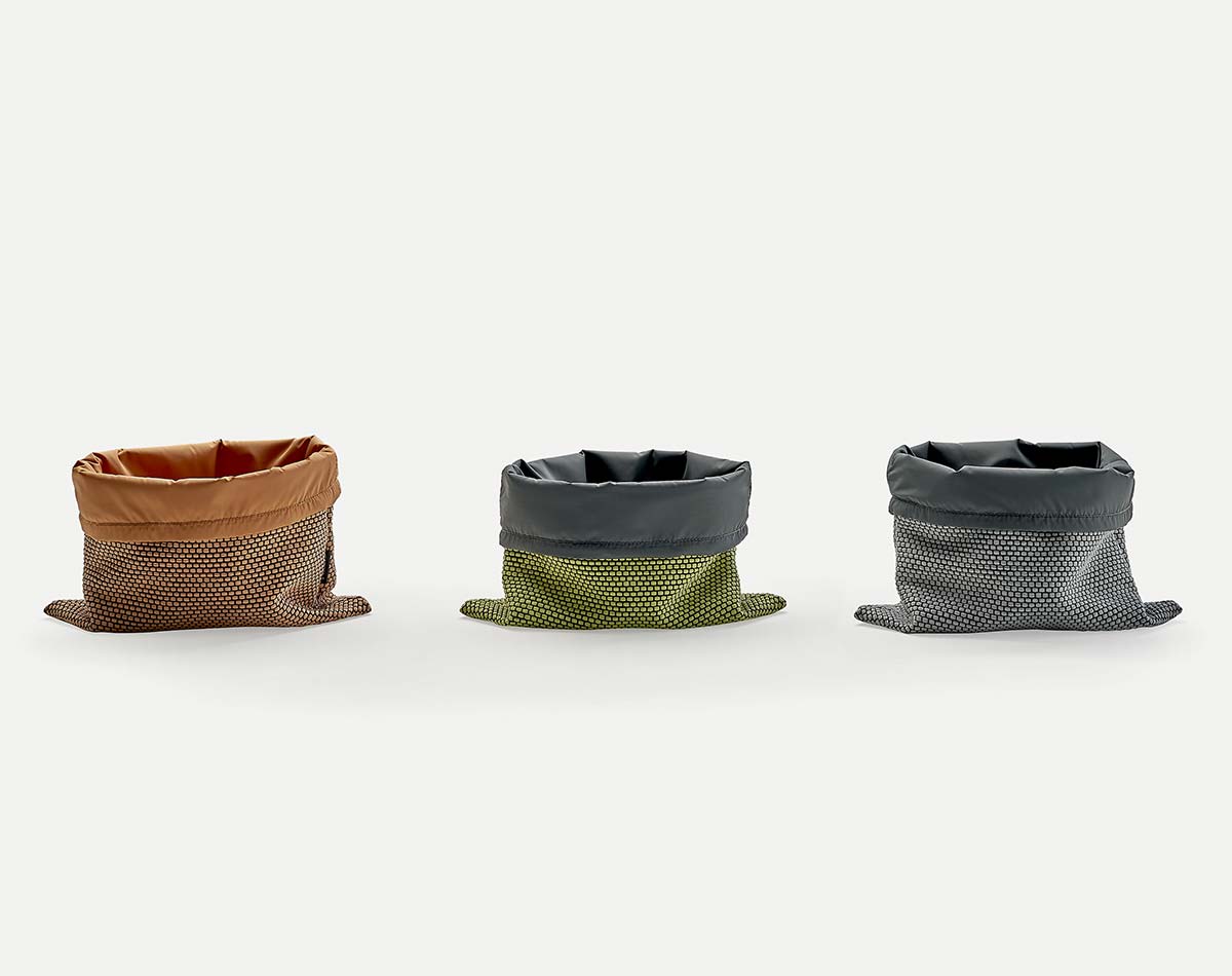 В поисках удобного и привлекательного места для хранения того же самого пледа Mucho, Estudio Sancal решила создать небольшое семейство мешков. Большие мягкие мешки XL - это идеальное место для хранения пледа рядом с диваном. В летнее время их можно складывать или использовать для хранения других предметов. Компактные модели Floppy XS также можно использовать для хранения всевозможных предметов - от расчесок и косметики до мобильных телефонов и кабелей к ним.
