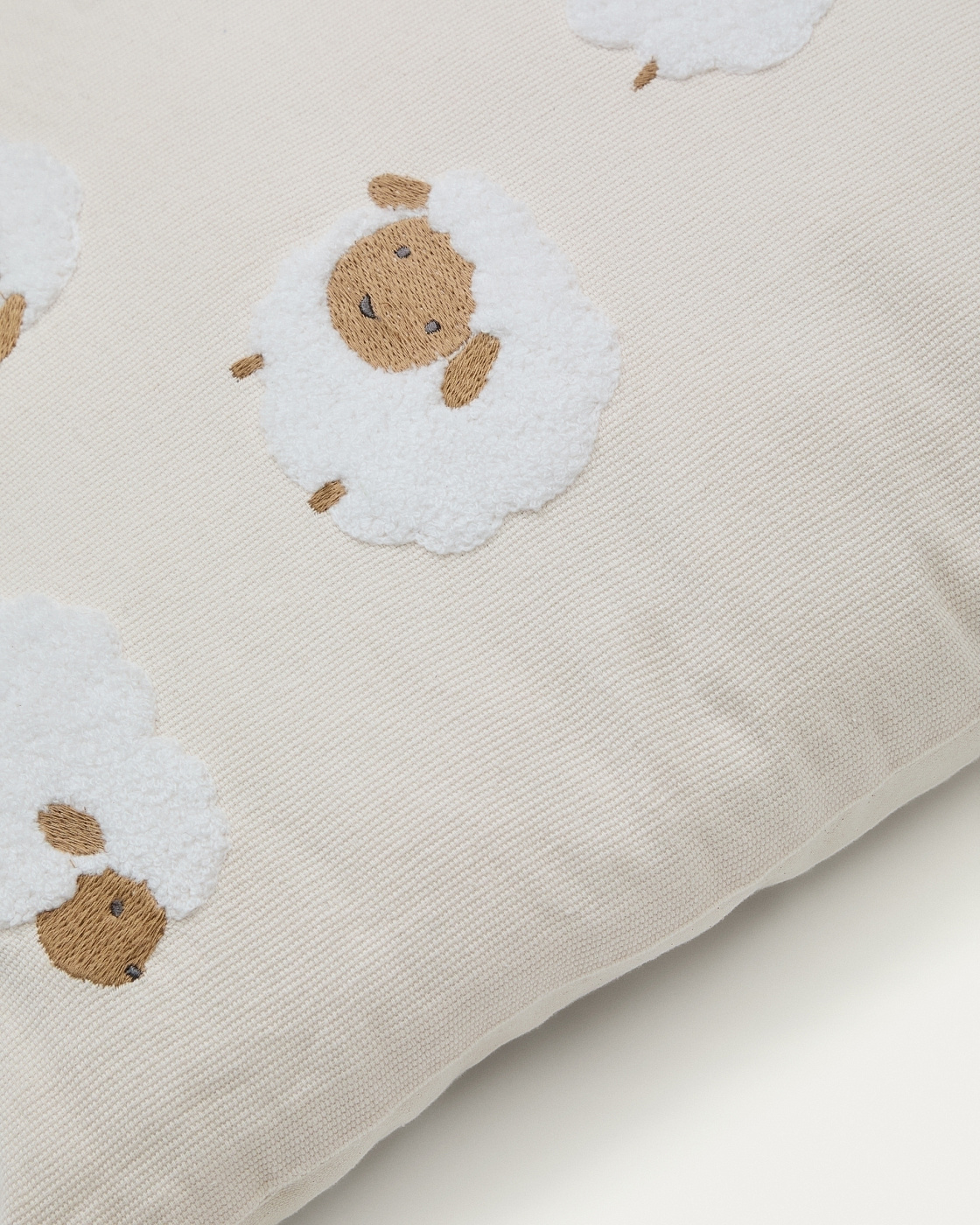 Чехол для подушки Milu из бежевого хлопка с вышивкой с овцами 45 x 45 см