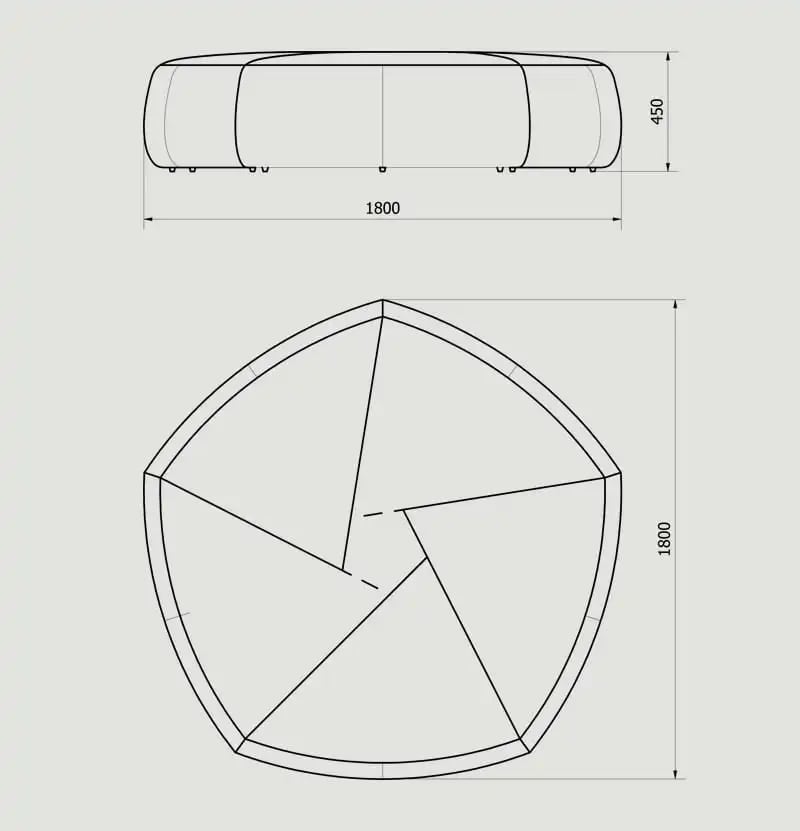 Пятиместный пуф пятиугольной формы. Его конструкция изготовлена из пенополиуретана, что делает его легким и легким в перемещении. Структура: пенополиуретан. Сиденье: мягкое.