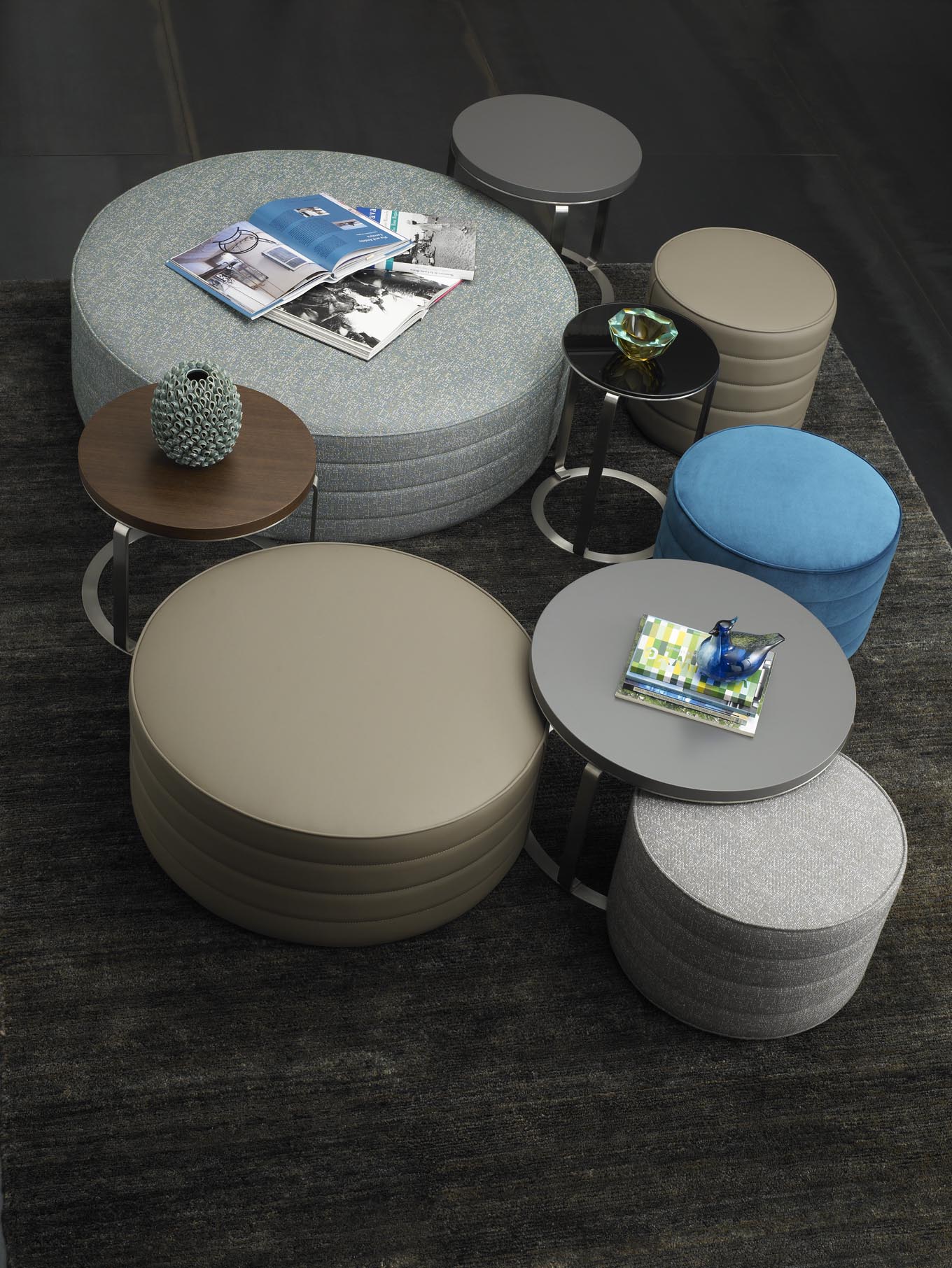 Brent - это коллекция круглых пуфов с ворсом по всему периметру; эта деталь является ее главной отличительной чертой в будущем. Идея боковых швов берет свое начало в бочках из-под нефти, отсюда и название. Различные размеры и формы позволяют размещать их в центре гостиной, на стойке регистрации отеля, в изножье кровати и т.д., а также в качестве вспомогательного элемента. Слегка обрезанные концы в сочетании с кантом по всему контуру придают Бренту нотку утонченности и элегантности.