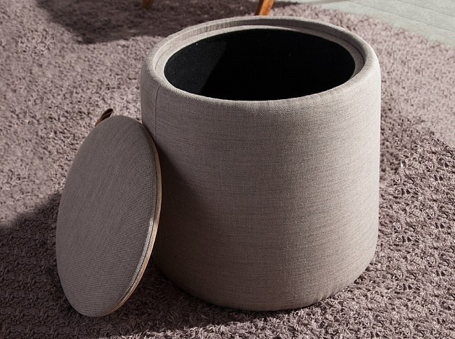 Пуф CLUB54 от фабрики Angel Cerda – оригинальный дизайн и скрытое место для хранения. Пуф CLUB54 станет вдвойне полезным предметом мебели в вашей квартире. Легко справляясь с ролью табурета или подставки под ноги, он решит задачу хранения пледа или других вещей. Скрытый внутренний отсек – практичная деталь, дающая этому пуфу явное преимущество перед аналогами. А универсальный цвет обивки и минималистичный дизайн – гарантия совместимости с современным городским интерьером. Пуф имеет цилиндрическую форму, сделан из прочной фанеры. Внешняя поверхность обита текстилем серого цвета с мягким наполнителем. Сиденье представляет собой крышку, убрав которую, открывается отсек для хранения вещей. Сбоку крышки есть ручка в виде петли из кожи коричневого цвета. Материал обивки – 100% полиэстер. Он прочный, износостойкий, поддается чистке от загрязнений. Размеры пуфа: высота – 40 см, ширина – 44 см, глубина – 44 см. Вес изделия – 10 кг. Изделие не рекомендуется ставить под прямые солнечные лучи. Использование отбеливателей и абразивов для чистки может испортить внешний вид.