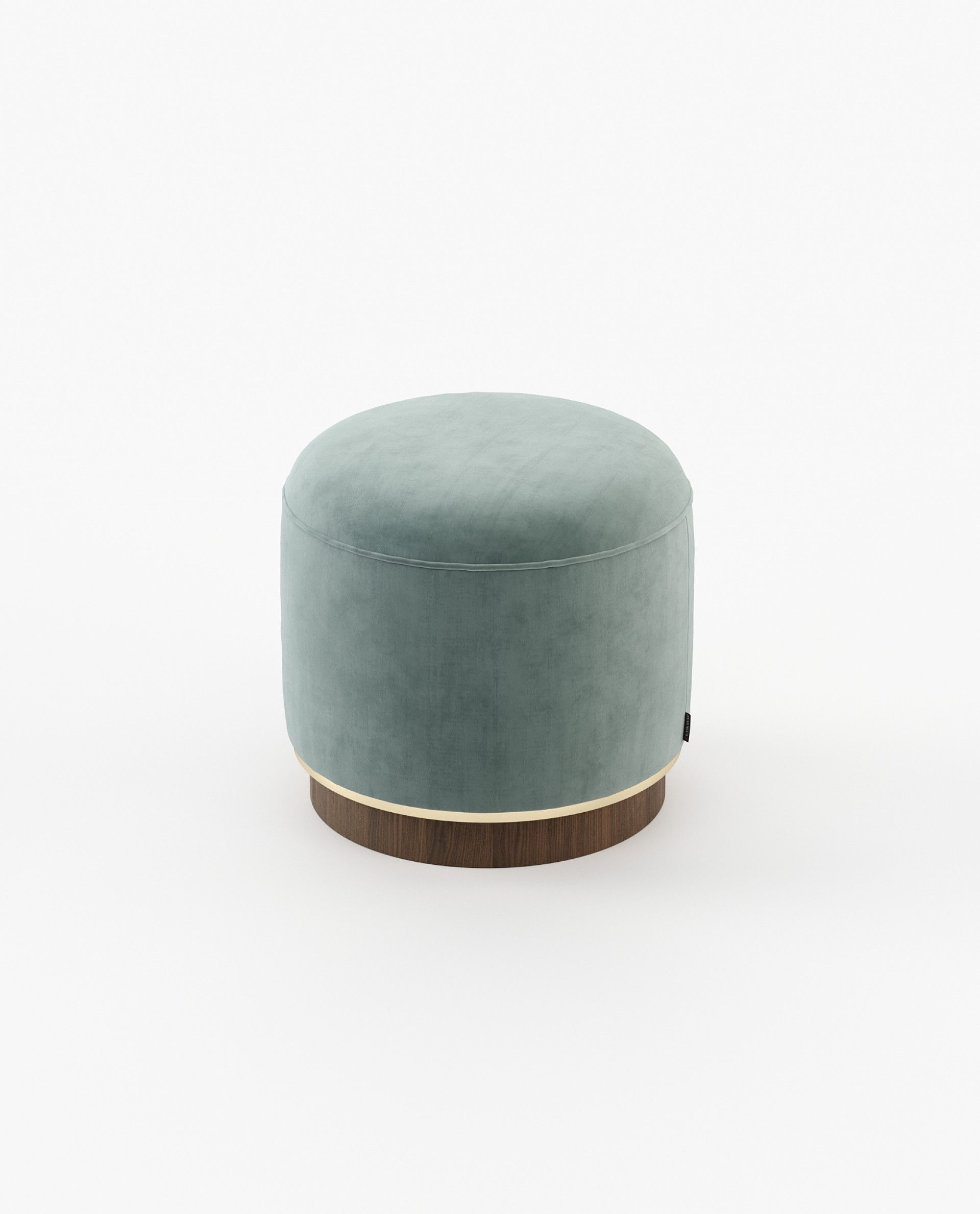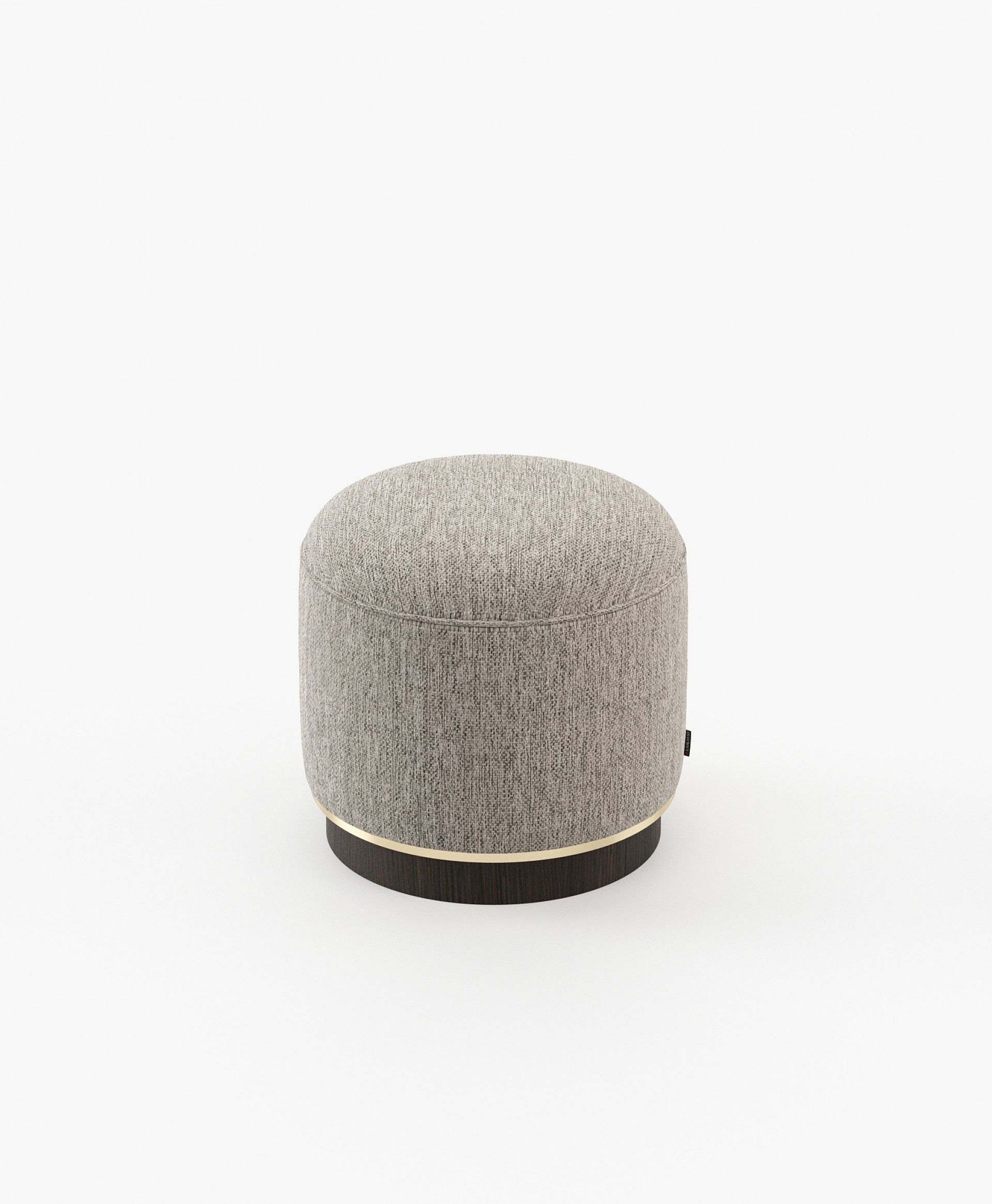 Eddy – это круглый пуф на основе дерева и обитый мягкой тканью. Металлическая окантовка придает этому изделию более яркий вид, придавая большей выразительности текстуре и цвету ткани.