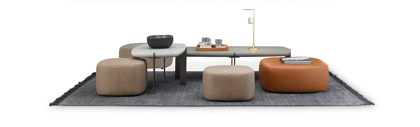 Коллекция пуфов Ely доступна в различных размерах и высотах. Он выделяется своей квадратной формой и дугообразными боковыми элементами, что делает его подходящим для любого современного интерьера. Их можно размещать индивидуально или группами, что позволяет создавать адаптируемые и динамичные пространства. Его особый дизайн позволяет сочетать его с коллекцией столов Grammy для создания больших гибких пространств в центре. Это слияние позволяет увеличить или уменьшить пространство, в котором вы их размещаете, в зависимости от потребностей и момента.