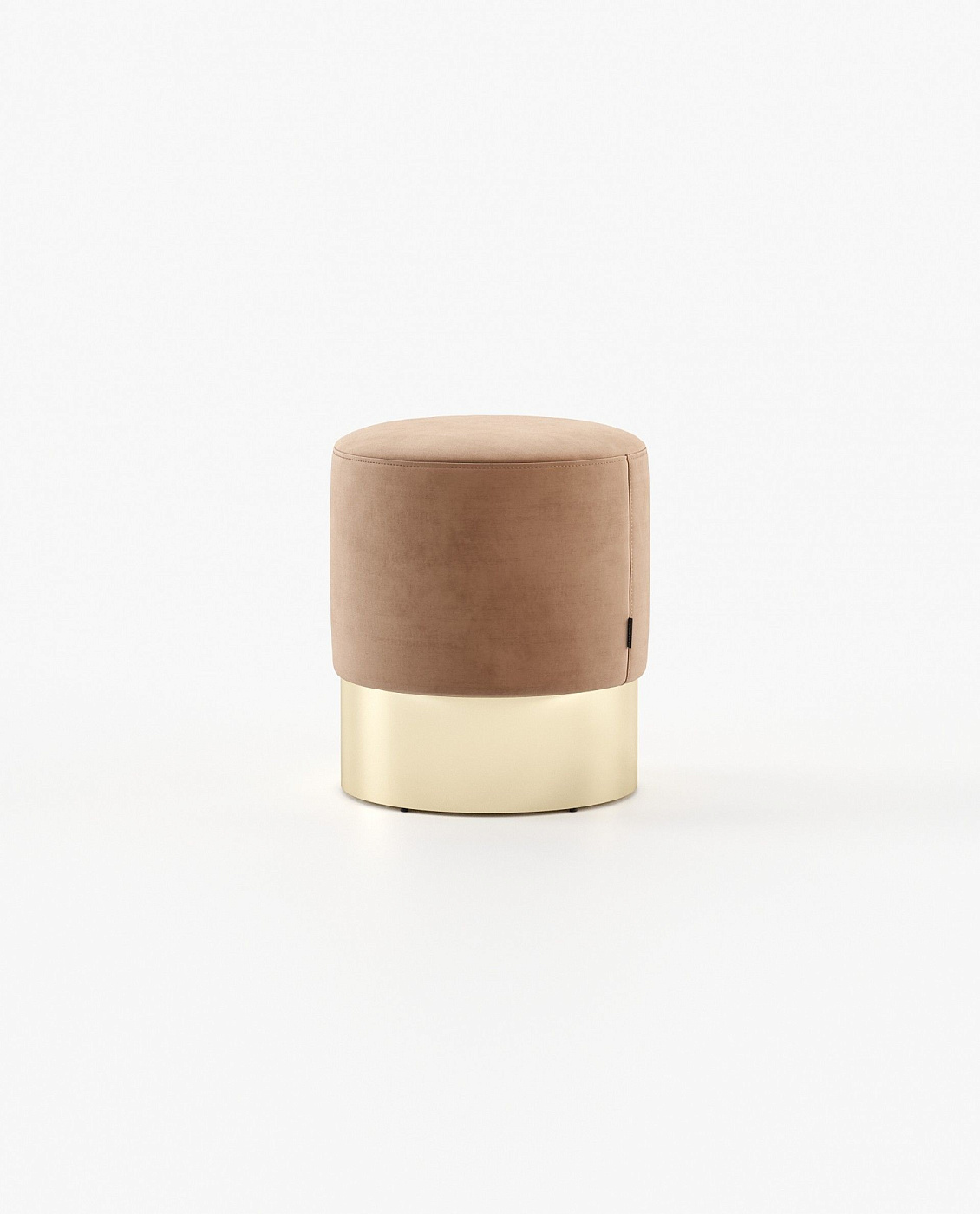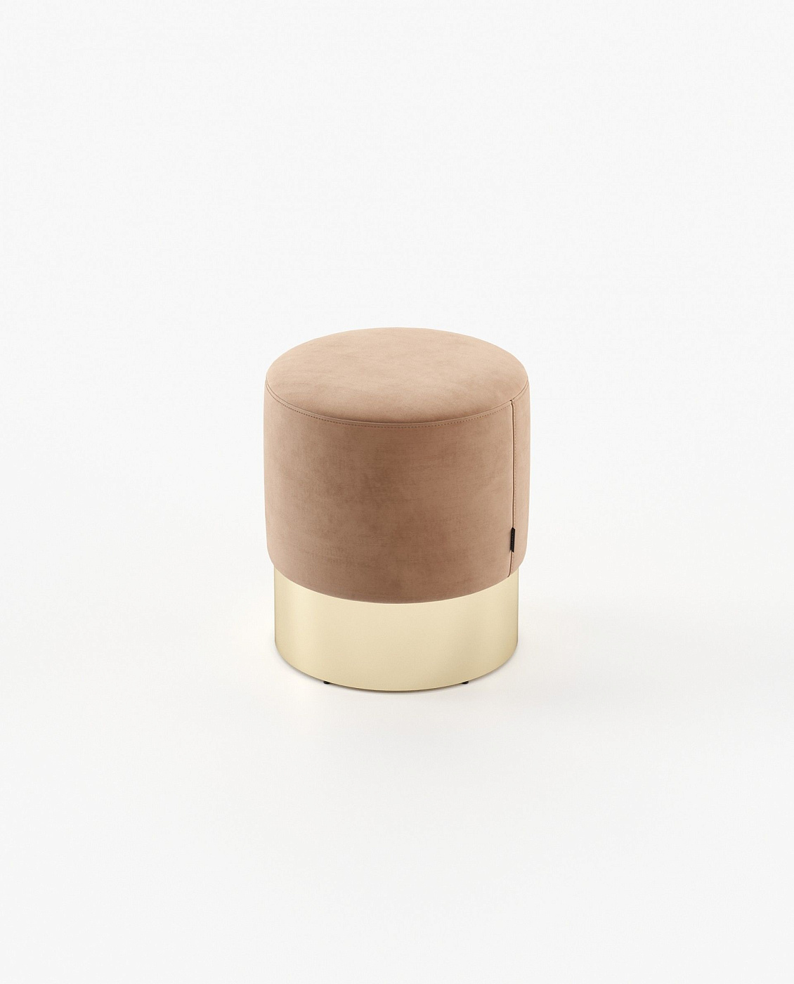 Isaac – это цилиндрический пуф с обитым сиденьем и металлическим основанием. Магия этого изделия рождается из сочетания яркости металла и цвета ткани в простой конструкции.