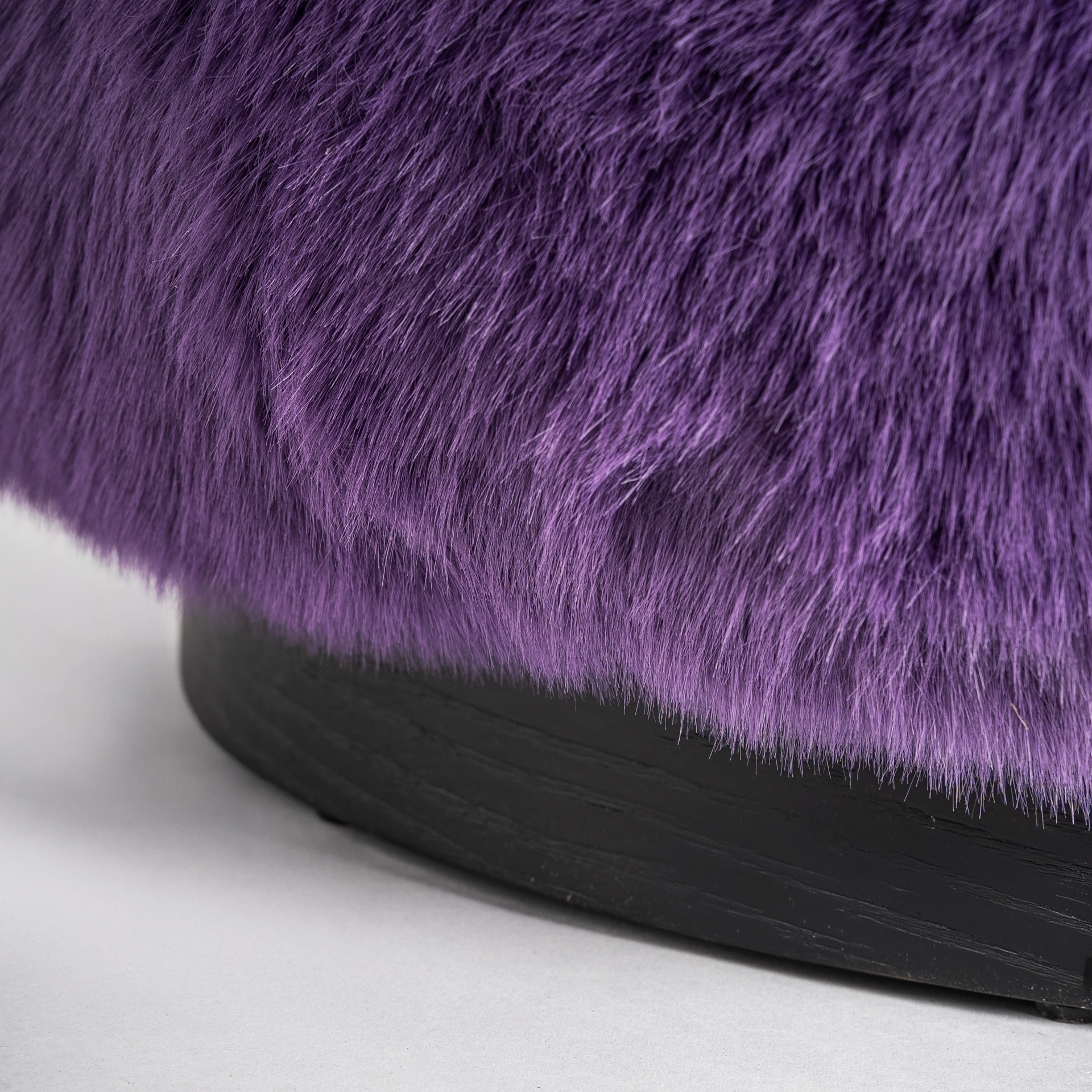 Эта фиолетовая пуф-подставка для ног с плюшевой текстурой имеет современный дизайн. Круглая форма и простое основание в сочетании с мягким и ярким материалом придают ему роскошный и элегантный вид, в который хочется добавить оригинальные детали с характером.