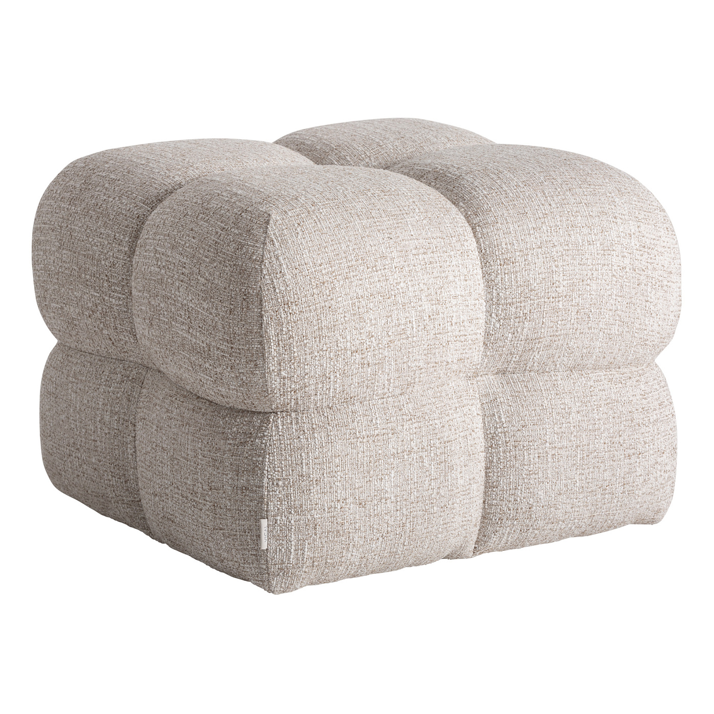 Современная подставка для ног Zizano, изготовленная из бежевого полиэстера с пятнистой текстурой в сочетании с фанерой и пенополиуретаном. Ширина: 60 см, Глубина: 60 см, Высота: 44 см