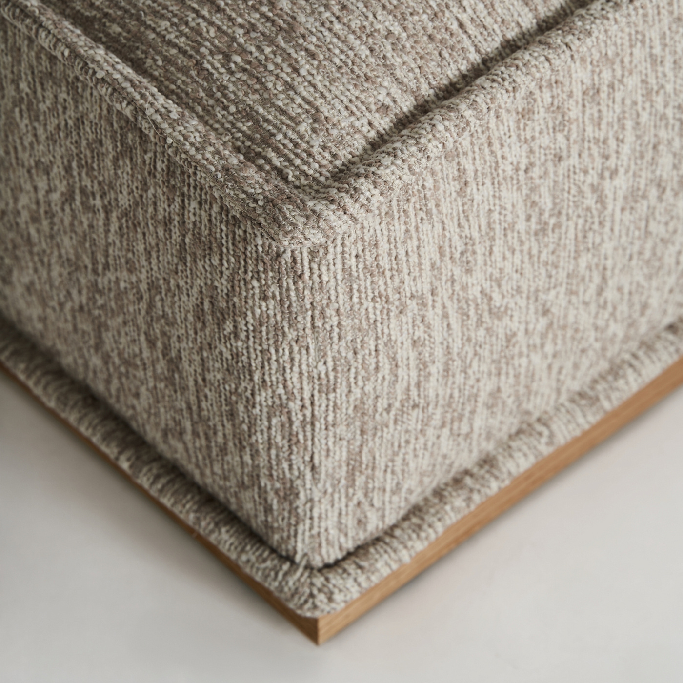 Современный пуф Vittel из бежевого полиэстера с пестрой отделкой в сочетании с коричневой сосной. Совместим с моделями: 34463, 34464. Ширина: 120 см, Глубина: 120 см, Высота: 42 см
