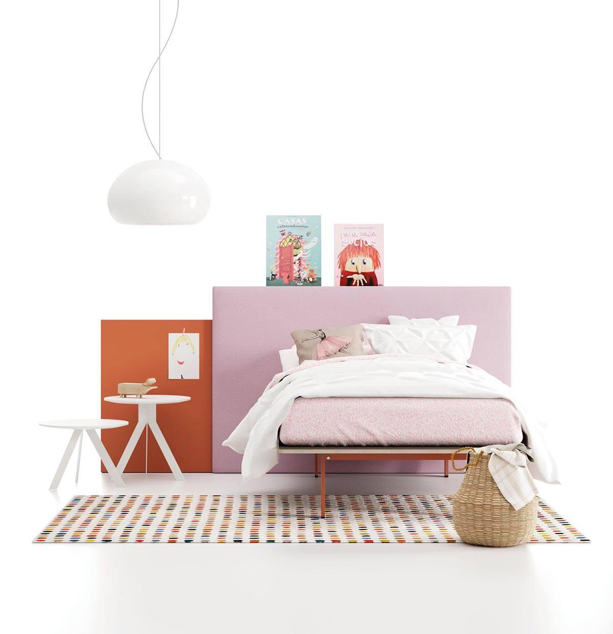 Молодежная композиция с кроватью на фенольной основе, изголовьем Paralex и столиком Nit.
