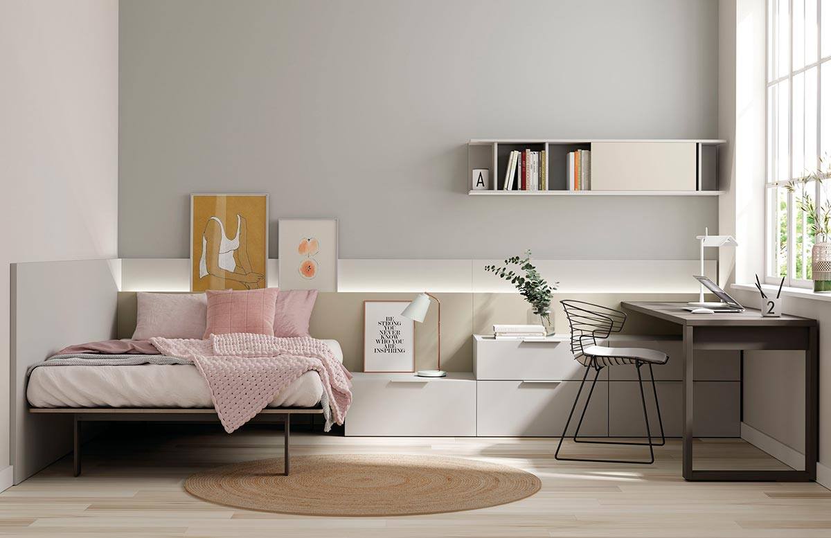 Молодежная кровать с изголовьем со светодиодной подсветкой. Шкаф Dressbox и полка Airbox.