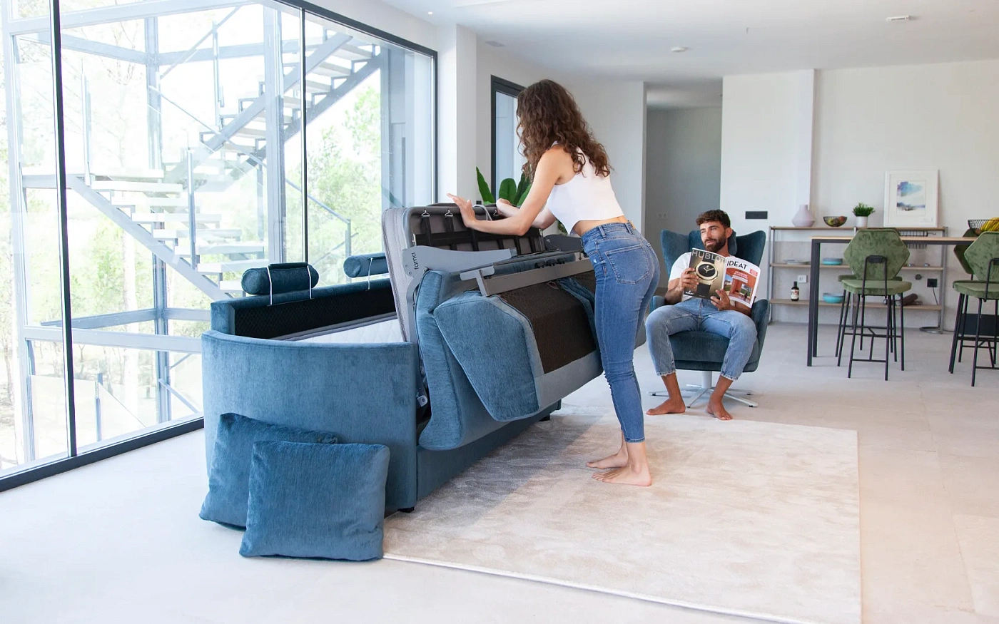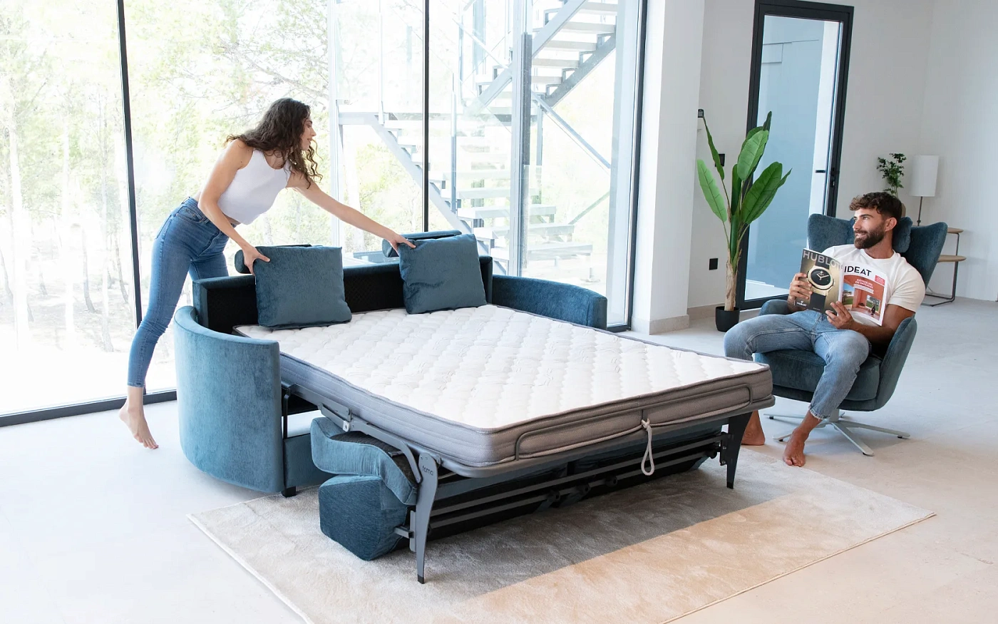 Bolero – это другой диван-кровать. Он отличается неповторимым дизайном Fama и функциональностью, отвечающей всем требованиям пользователей диванов этого типа. В то время как большинство диванов-кроватей на рынке очень высокие и имеют очень глубокое сиденье, сиденье Болеро ниже и неглубокое и настолько похоже на сиденье обычного дивана, что, если бы вам не сказали, вы бы никогда не подумали, что у него есть сиденье. механизм сиденья. Это одно из основных преимуществ Болеро, которое очень удобно и как диван, и как кровать. Благодаря этому и привлекательному дизайну мы можем использовать его в качестве основного дивана в гостиной и использовать в качестве кровати, когда он нам понадобится. Он также доступен в модульной версии. Есть два типа рук: прямые и изогнутые. Он включает в себя оригинальную систему подголовников, которую можно практически спрятать в отверстии в спинке сиденья. Для переоборудования дивана в кровать используется итальянская система открывания.