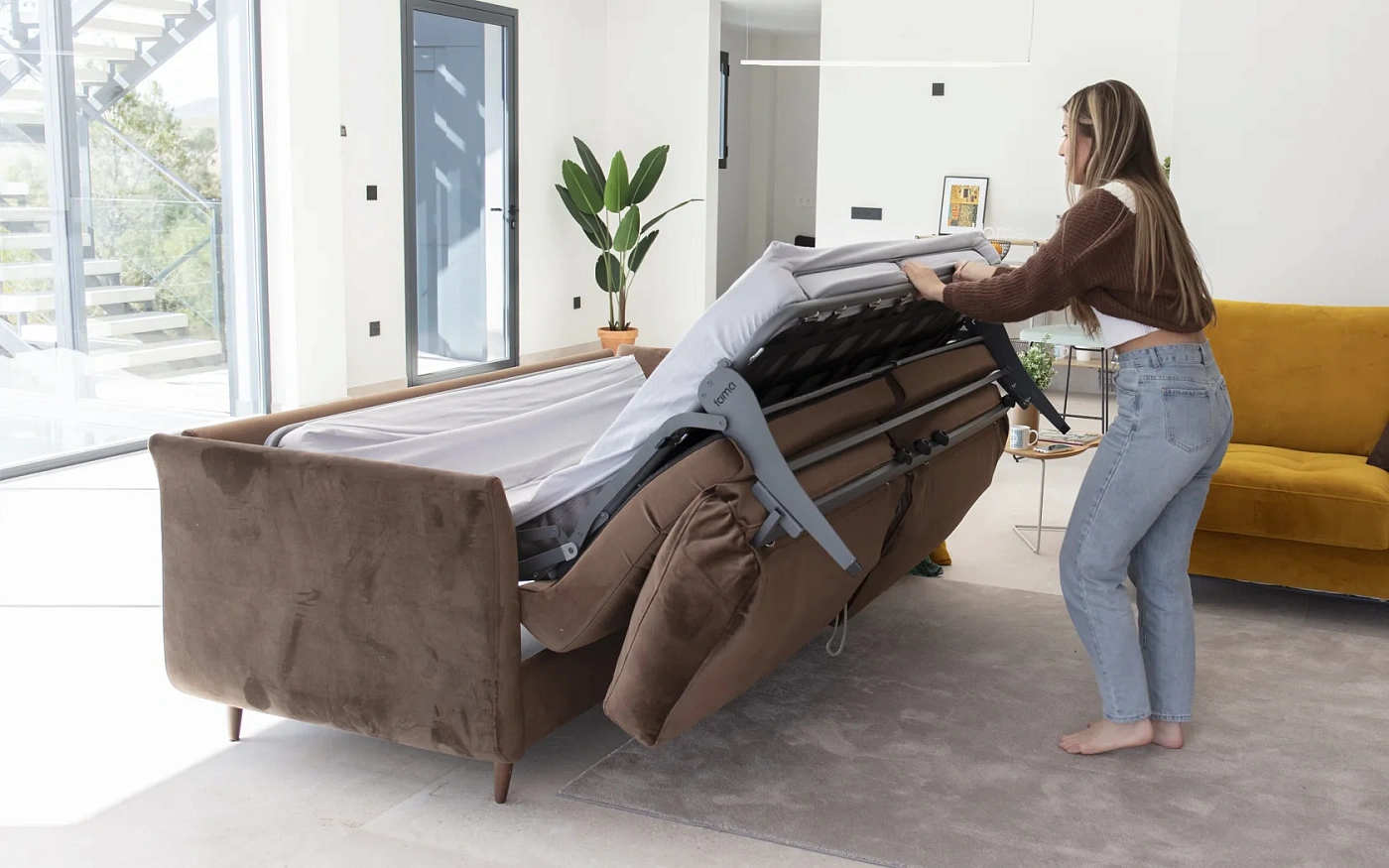 В рамках модели Helsinki мы представляем новый диван с раскладывающимся механизмом. Нам удалось сохранить высокий комфорт, а также элегантный и легкий дизайн дивана Helsinki, поскольку на первый взгляд он не похож на диван-кровать. Эта новая версия кровати обеспечивает большую дополнительную ценность модели, поскольку мы можем разместить ее в любой гостиной или гостиной и иметь возможность превратить ее в кровать, когда нам это понадобится.