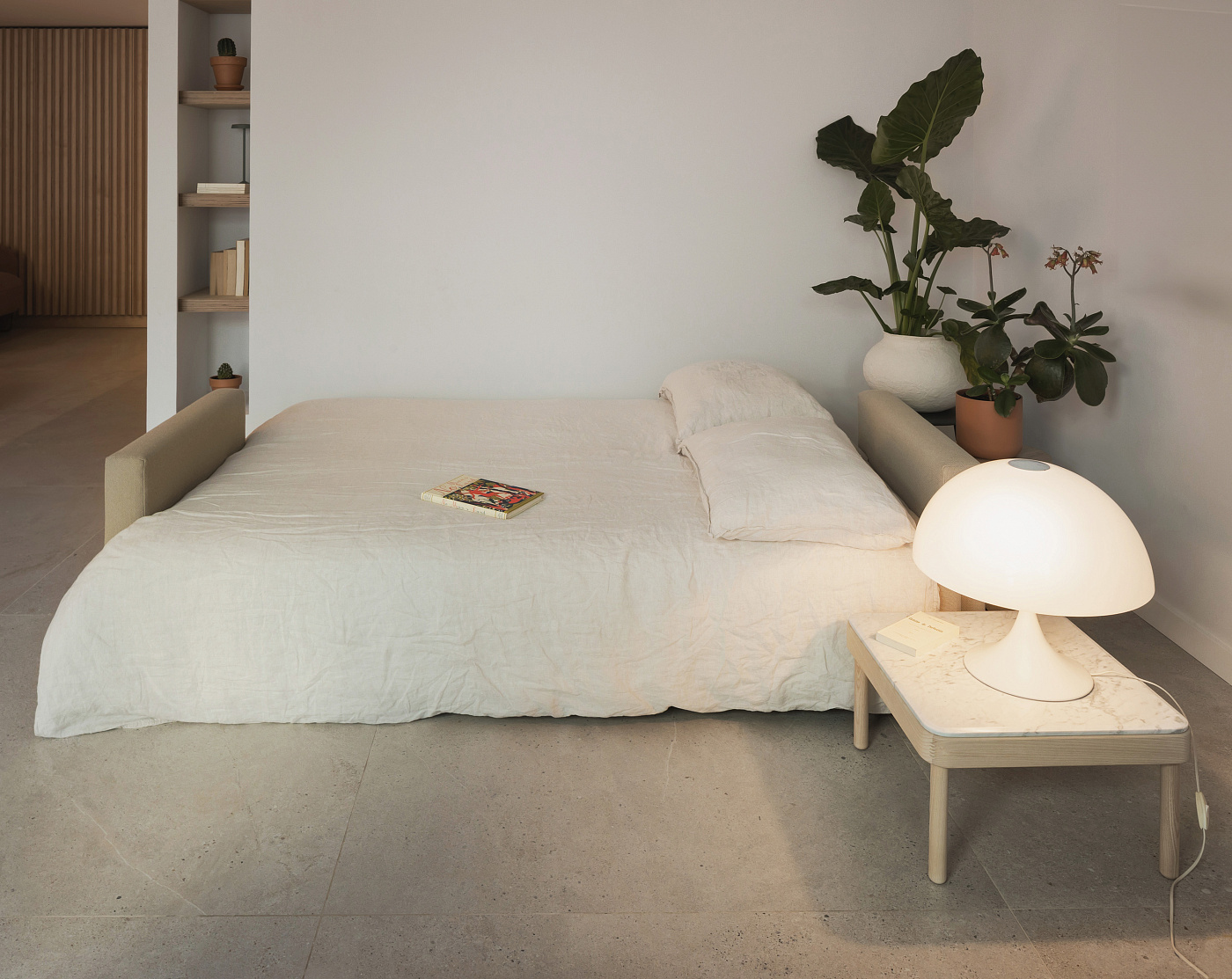 Nap - это диван-кровать, разработанный Рафой Гарсией. Мягкие текстильные детали вдохновлены старинными шерстяными матрасами. Диван имеет удобную мягкую спинку, к которой можно добавить 4 свободные подушки для непринужденной версии или две мягкие подушки для спинки, чтобы создать более домашнюю композицию. За два простых шага нам удалось превратить диван в кровать и наоборот. Скрытый ящик под конструкцией идеально подходит для хранения постельного белья и других вещей. Ящик изготовлен из натурального шпона, а ножки покрыты черным лаком.