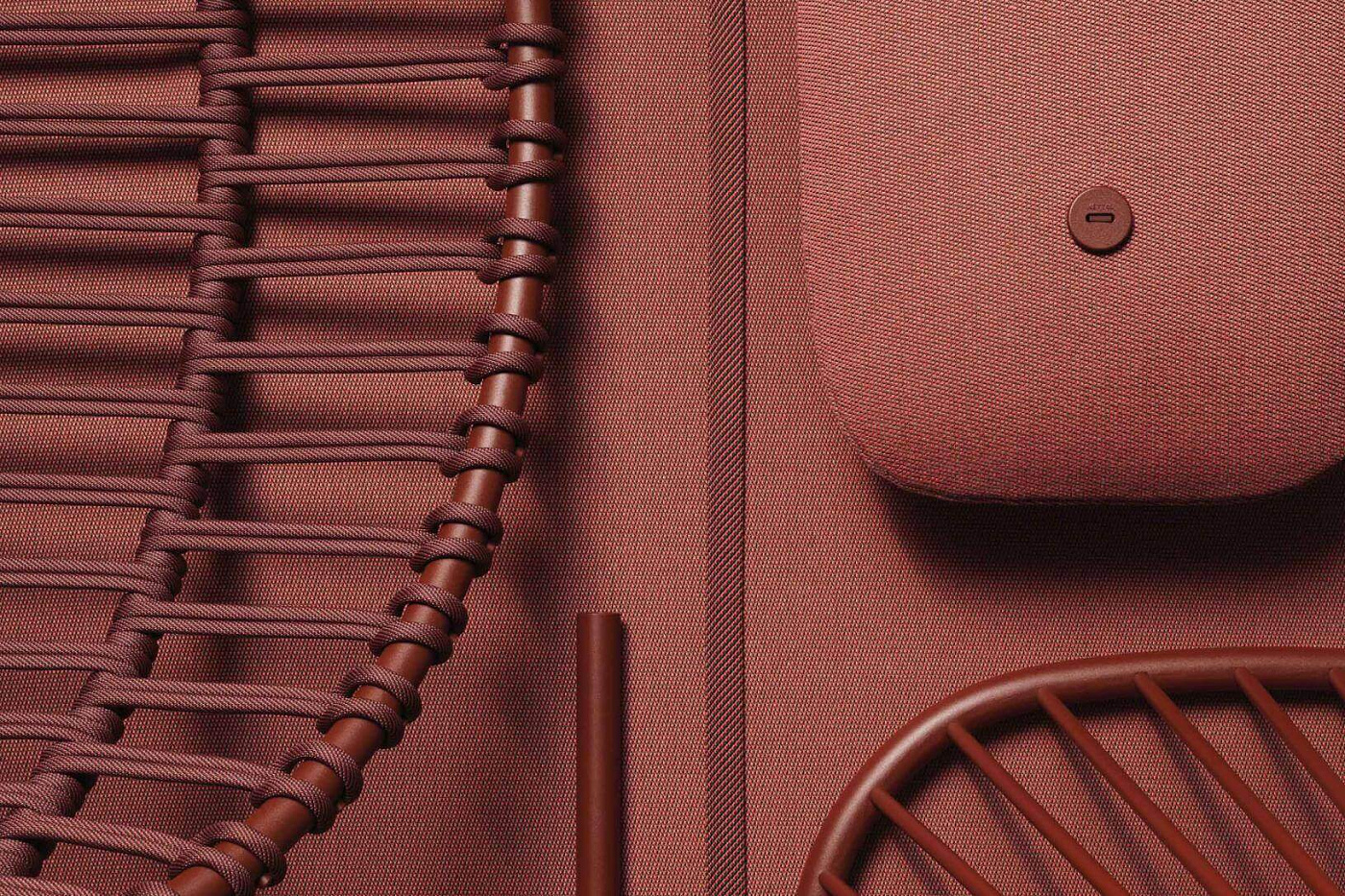 Cala’ - это кресло с высокой спинкой, вдохновленное культовым Эммануэль. Кресло обладает величественным пространственным присутствием благодаря прозрачным и светлым поверхностям. Открытое переплетение веревки создает решетчатое окно для визуальной приватности, сохраняя при этом связь с природными элементами. "Кала" может использоваться как для обедов на открытом воздухе, так и в качестве кресла для отдыха . Широкий выбор металлических покрытий, цветов канатов и тканей для подушек открывает множество возможностей для придания индивидуальности креслу в соответствии с различными проектами. Каркас сиденья Cala изготовлен из алюминиевых профилей с покрытием. Плетение представляет собой завязанную узлом веревку. Стул поставляется с двумя вариантами ножек из тикового дерева или алюминиевой подставкой-основанием. Коллекция Cala включает в себя обеденный стул, серию столов, низкие скамеечки для ног, двух- и трехместный диван. Обеденный стол имеет монолитный и смелый вид, создавая контраст с легкостью стульев. Такую же каркасную конструкцию можно распознать в низких столиках и скамеечках для ног.