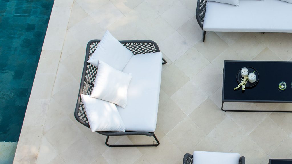 Характерное плетение этой коллекции придаёт ей лёгкость, в то время как извилистые алюминиевые конструкции придают изделиям прочность и долговечность. Антрацитовый шнур и тёмное порошковое покрытие делают коллекцию универсальной, позволяя идеально вписываться в любое пространство