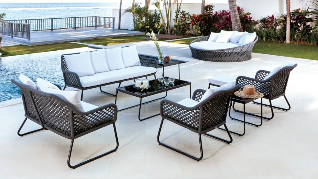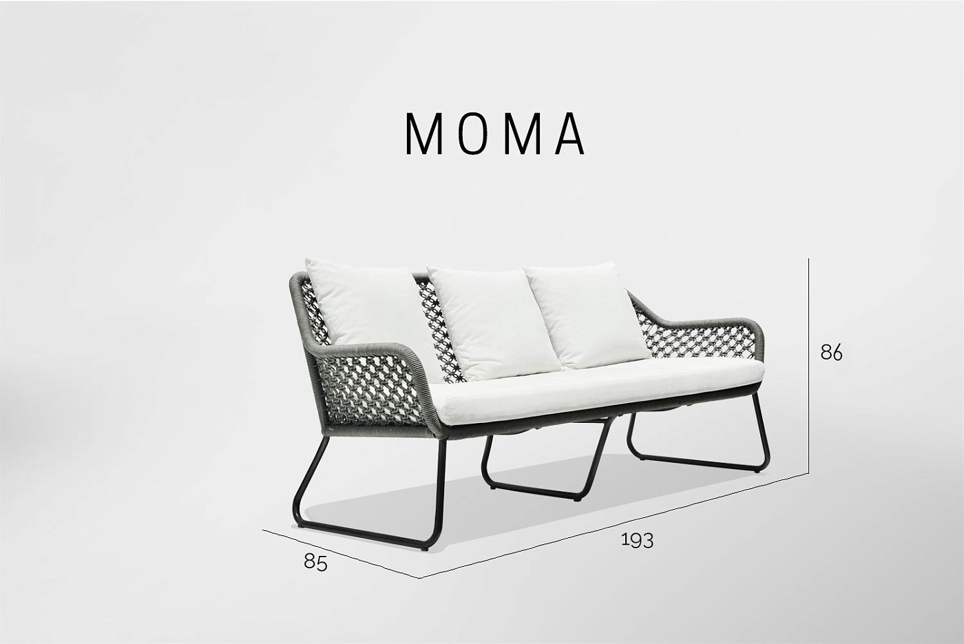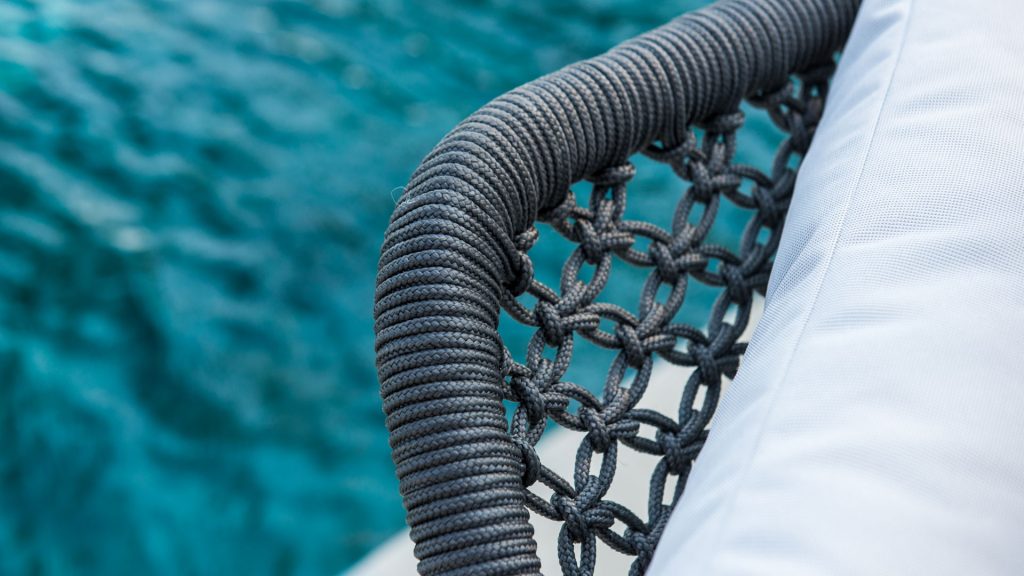 Характерное плетение этой коллекции придаёт ей лёгкость, в то время как извилистые алюминиевые конструкции придают изделиям прочность и долговечность. Антрацитовый шнур и тёмное порошковое покрытие делают коллекцию универсальной, позволяя идеально вписываться в любое пространство