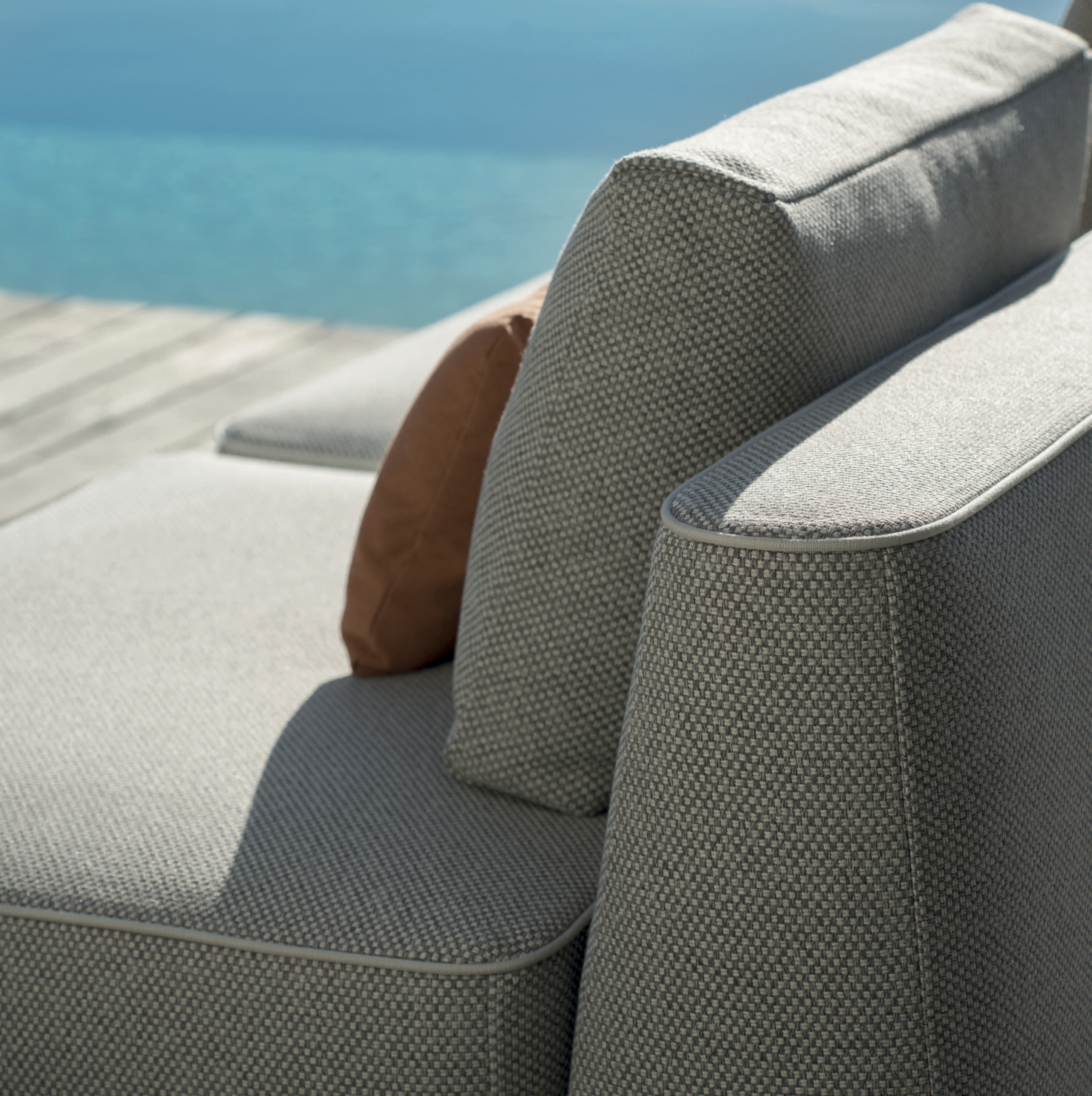 Двойной центральный модуль изготовлен из высокоомной алюминиевой трубки и обит пеной различной плотности. Возможность изготовления на заказ из политры других технических тканей подходящих для наружного применения. Обивка.