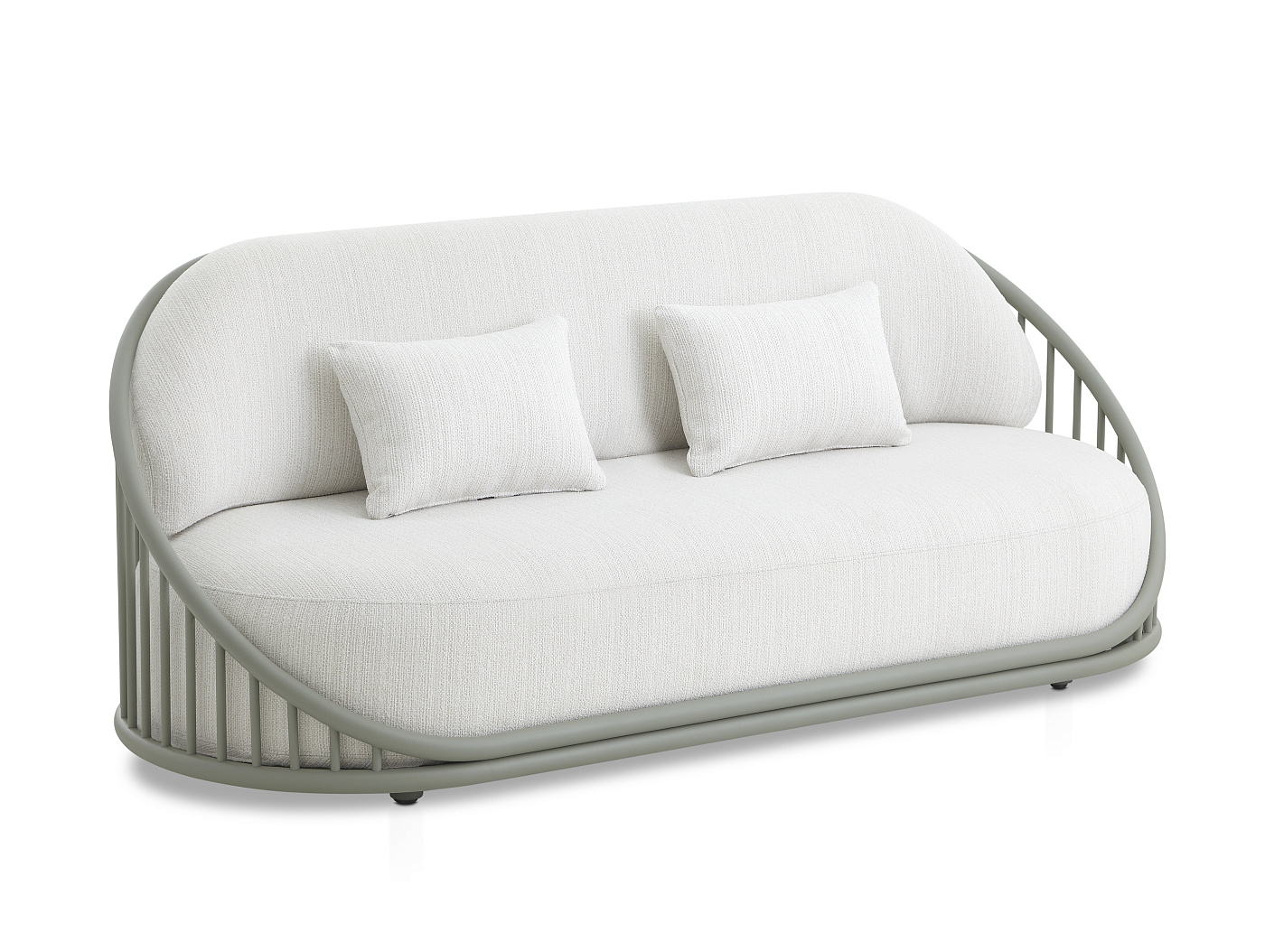 Диван изготовлен из высокопрочной алюминиевой трубы. Возможность персонализации благодаря широкому выбору технических тканей, полностью подходящих для использования на открытом воздухе.